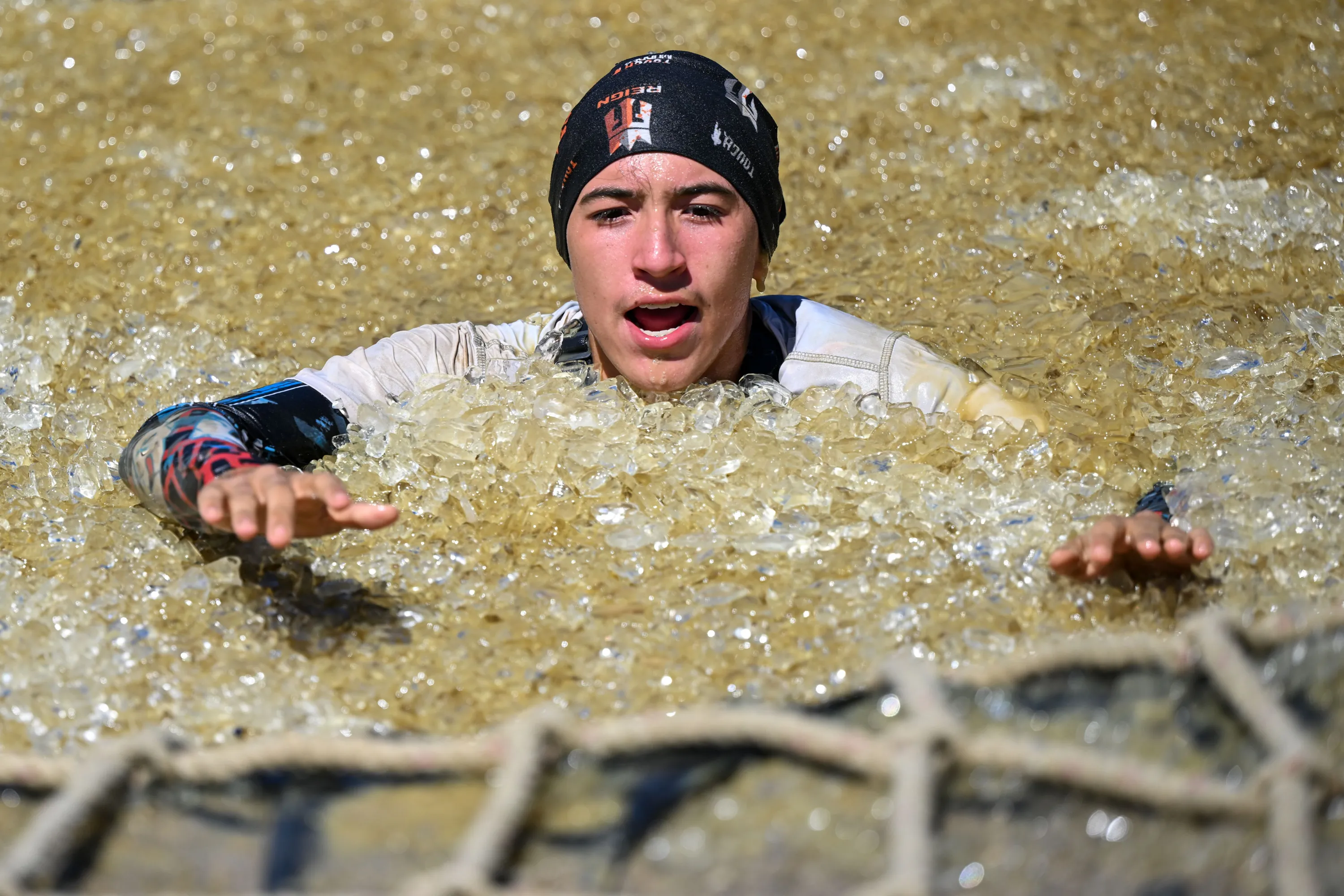 Competitors take part in “Tough Mudder” at the Glen Helen Raceway in San Bernardino, California, United States on April 2, 2023. (Photo by Tayfun Coskun/Anadolu Agency via Getty Images)