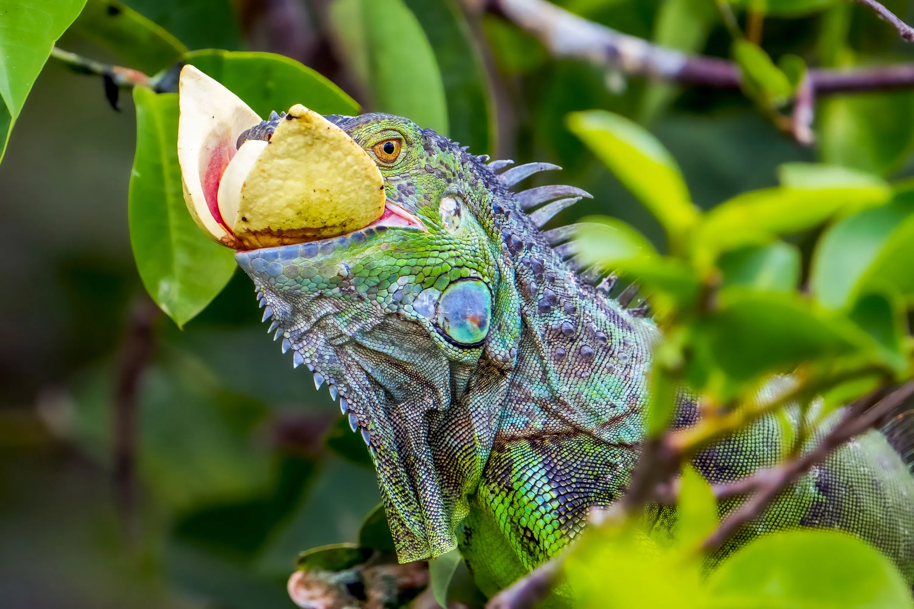 An iguana eats fruit in the Wakodahatchee Wetlands in Delray Beach, Florida on March 26, 2023. The wetlands attract nature lovers and wildlife photographers and are home to more than 140 bird species and a variety of other wildlife. (Photo by Ronen Tivony/SOPA Images/Rex Features/Shutterstock)