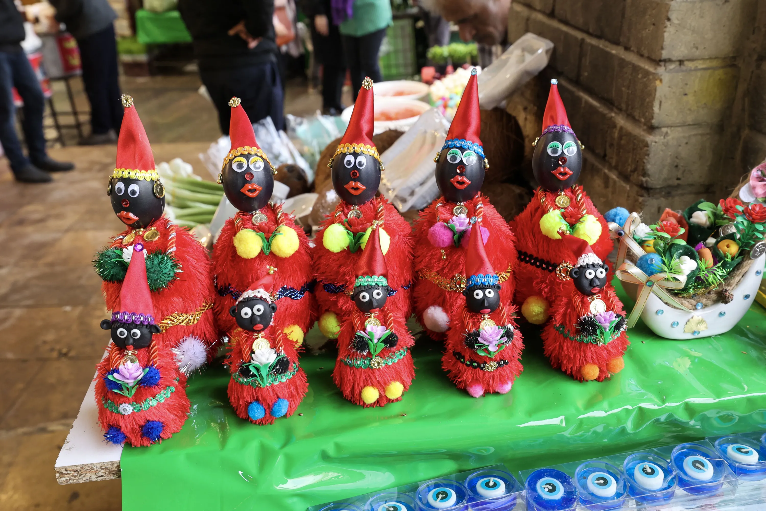 In this picture taken on March 14, 2023, figures of the fictional folklore character Hajji Firuz are displayed at a stall in Tehran ahead of the Nowruz New Year festival. Tehran is emptying ahead of the Persian New Year, as is the case annually, but this time around Iranians are being forced to adapt as the festival coincides with Ramadan. (Photo by Atta Kenare/AFP Photo)