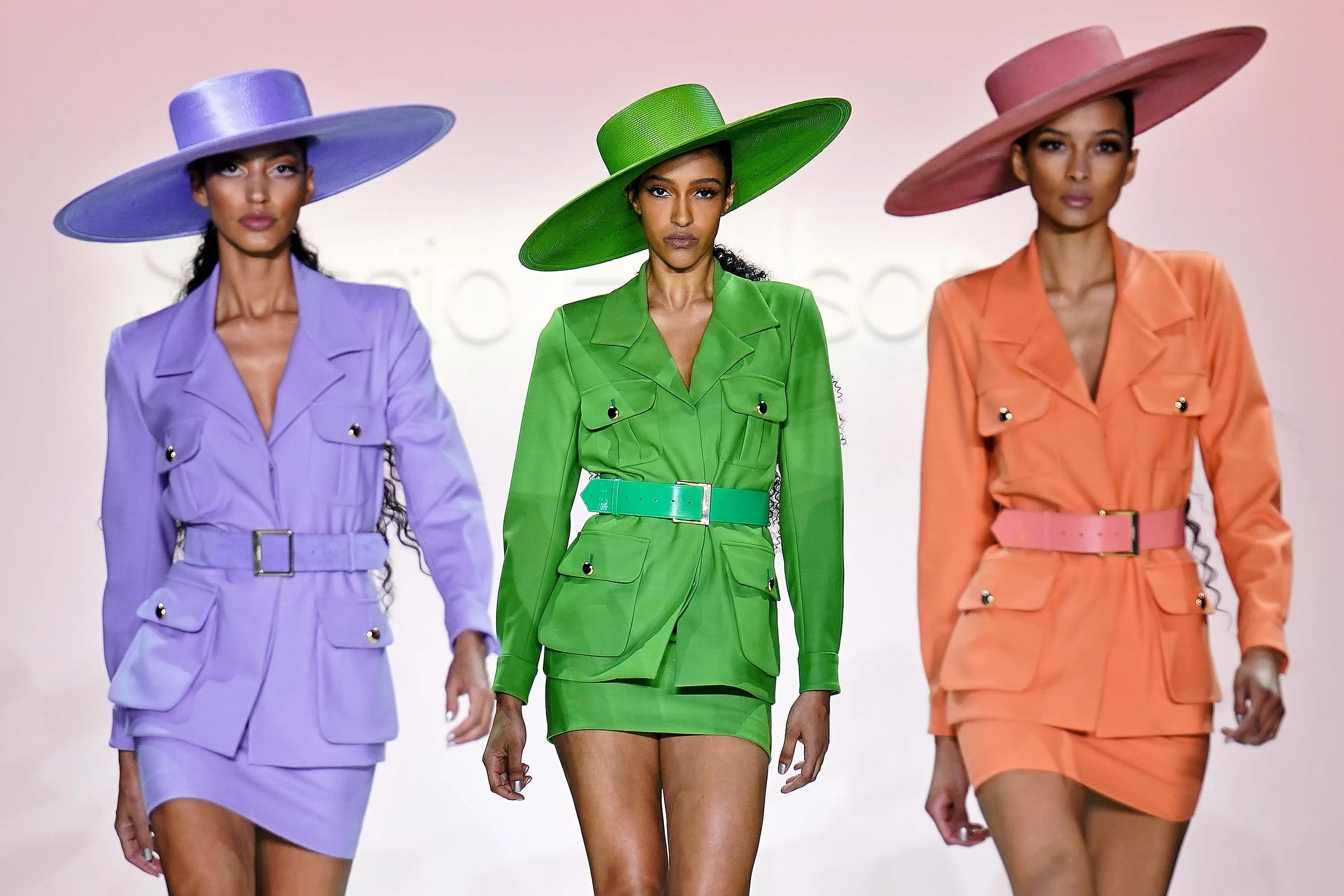 Fashion from Sergio Hudson's fall/winter 2022 collection is modeled during Fashion Week, Sunday, February 13, 2022, in New York. (Photo by John Minchillo/AP Photo)