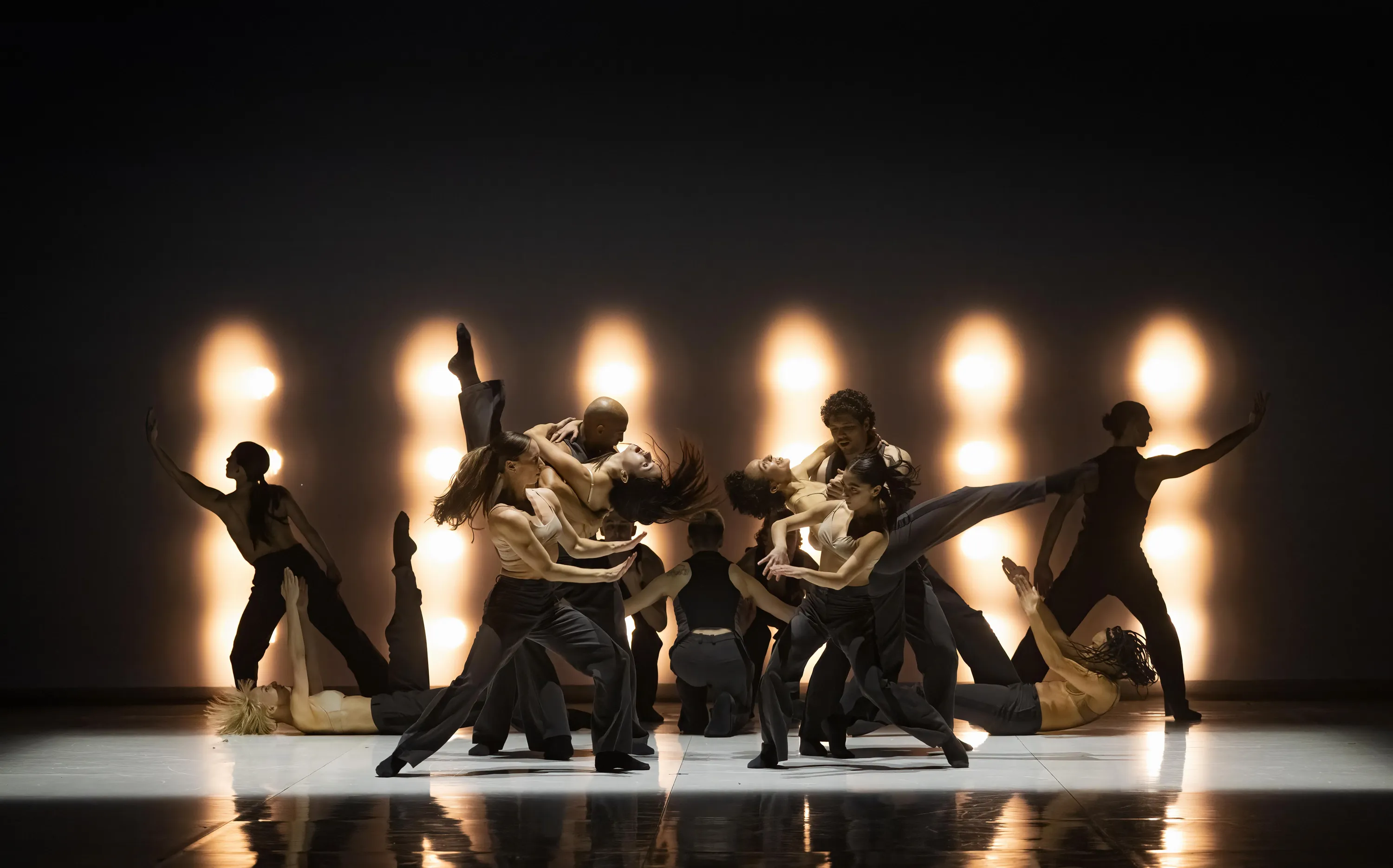 Dancers of Ballets Jazz Montréal perform during the press call for “Dance Me – Music by Leonard Cohen” at Sadlers Wells Theatre on February 7, 2023 in London, England. (Photo by Katja Ogrin/Getty Images)