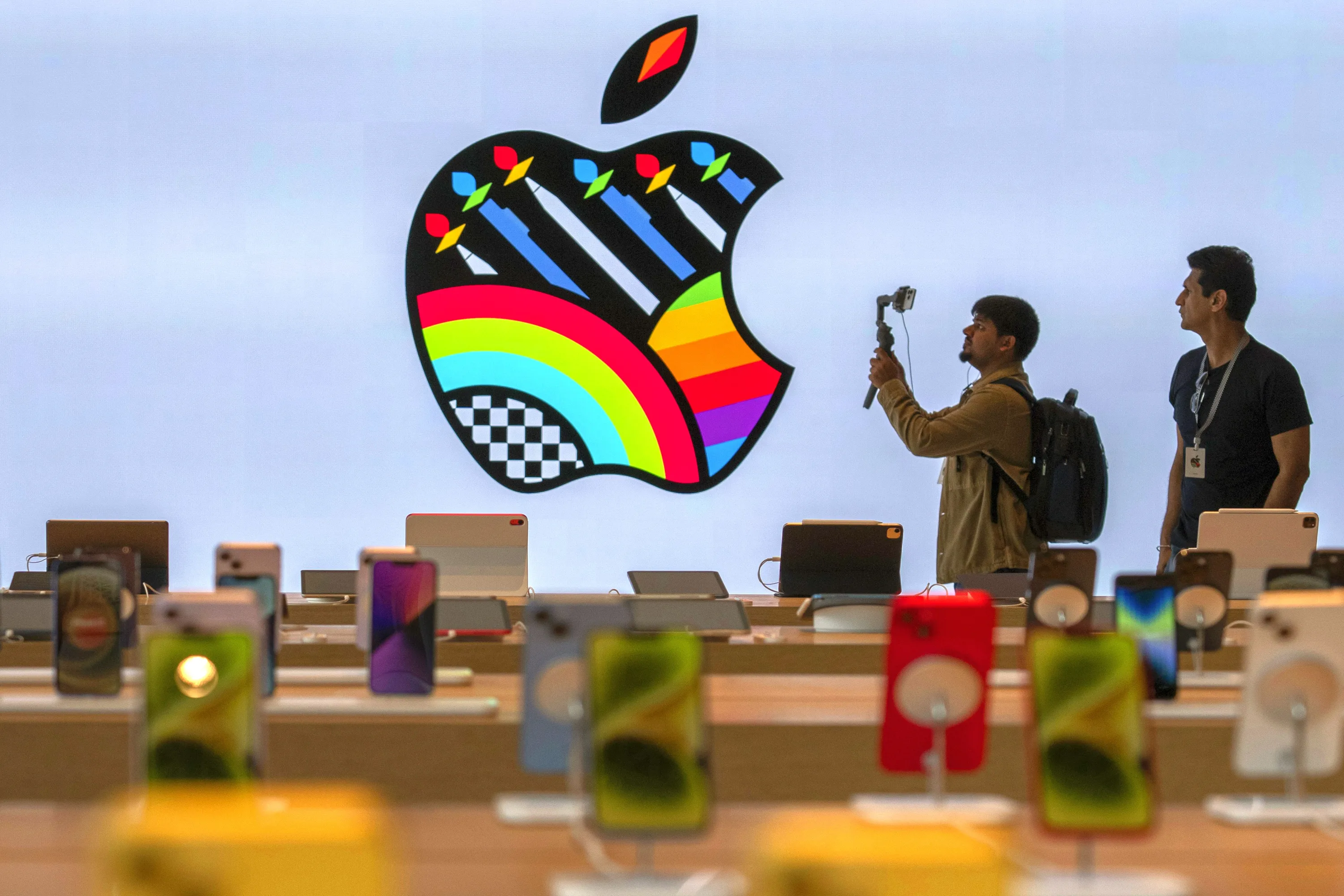 iPhones are on display during a press preview of India's first Apple Store in Mumbai, India, Monday, April 17, 2023. (Photo by Rafiq Maqbool/AP Photo)