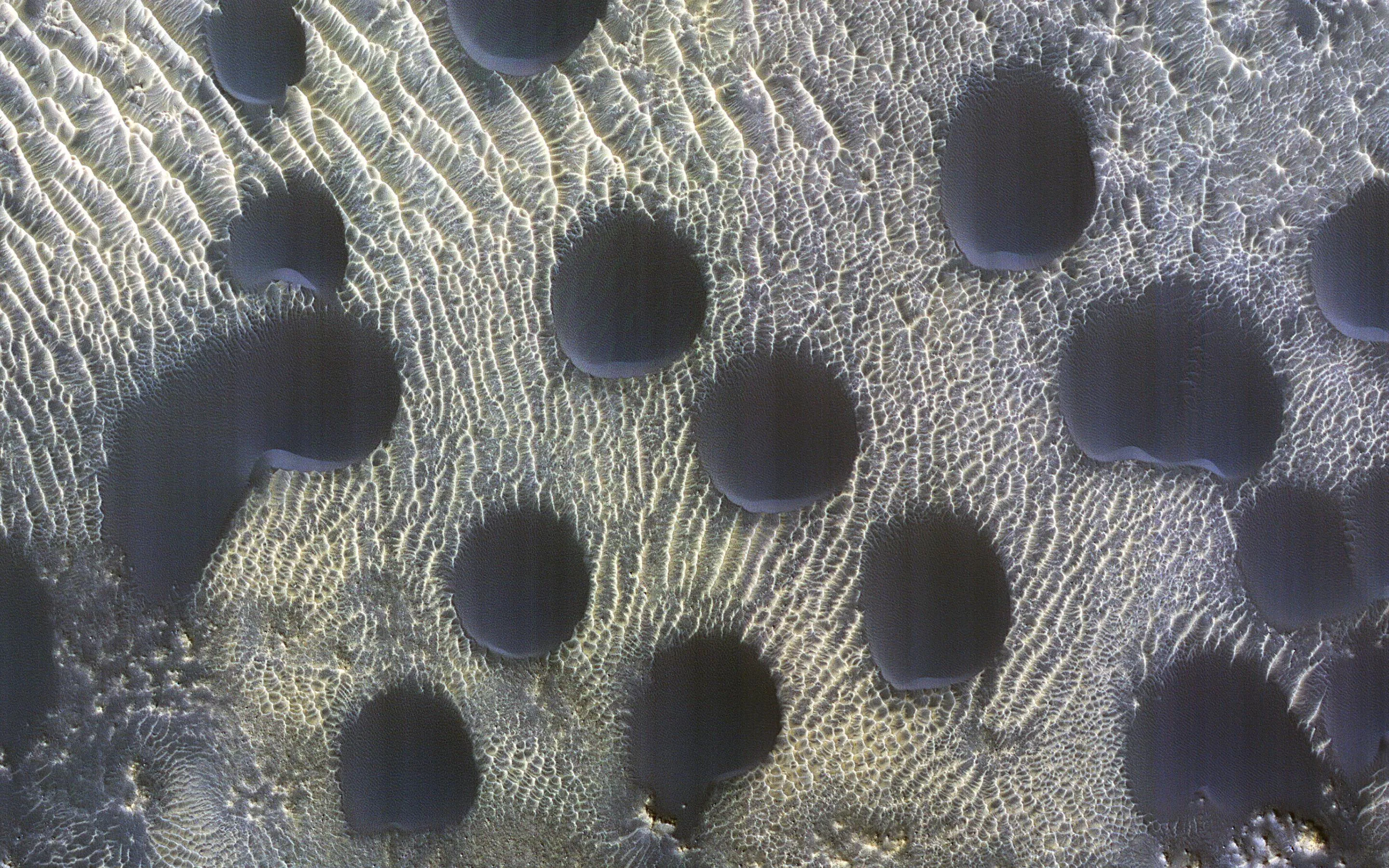 An undated image from NASA's Mars Reconnaissance Orbiter shows circular sand dunes on the surface of Mars, in this handout image obtained by Reuters on March 14, 2023. (Photo by NASA/Jpl-Caltech/University of Arizona/Handout via Reuters)