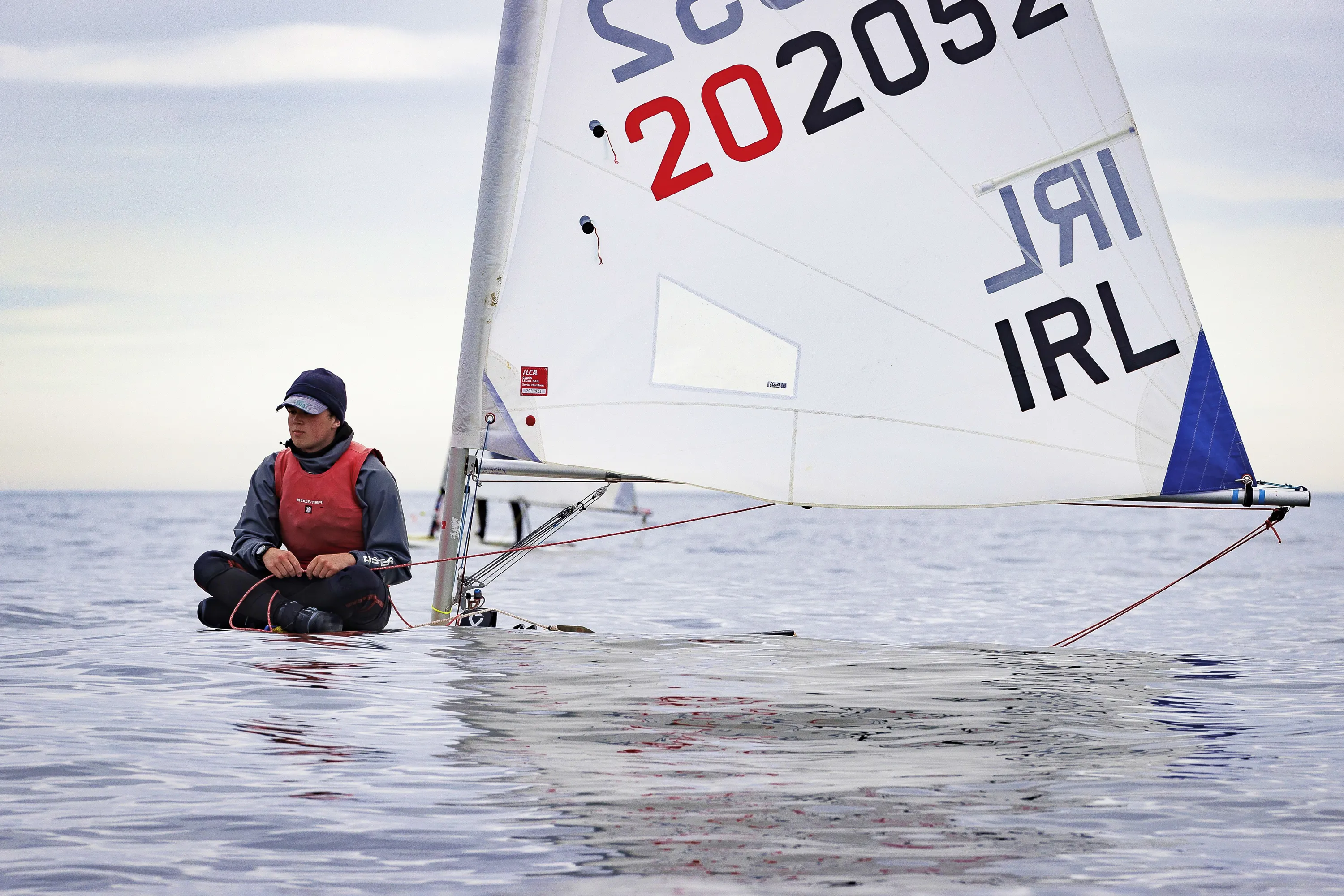 Sam Kelly from East Down Yacht Club competes in the ILCA 6 class race at the Investwise Irish Sailing Youth National Championships 2023 on Sunday, April 16, 2023 hosted by Howth Yacht Club. (Photo by David Branigan/Oceansport)