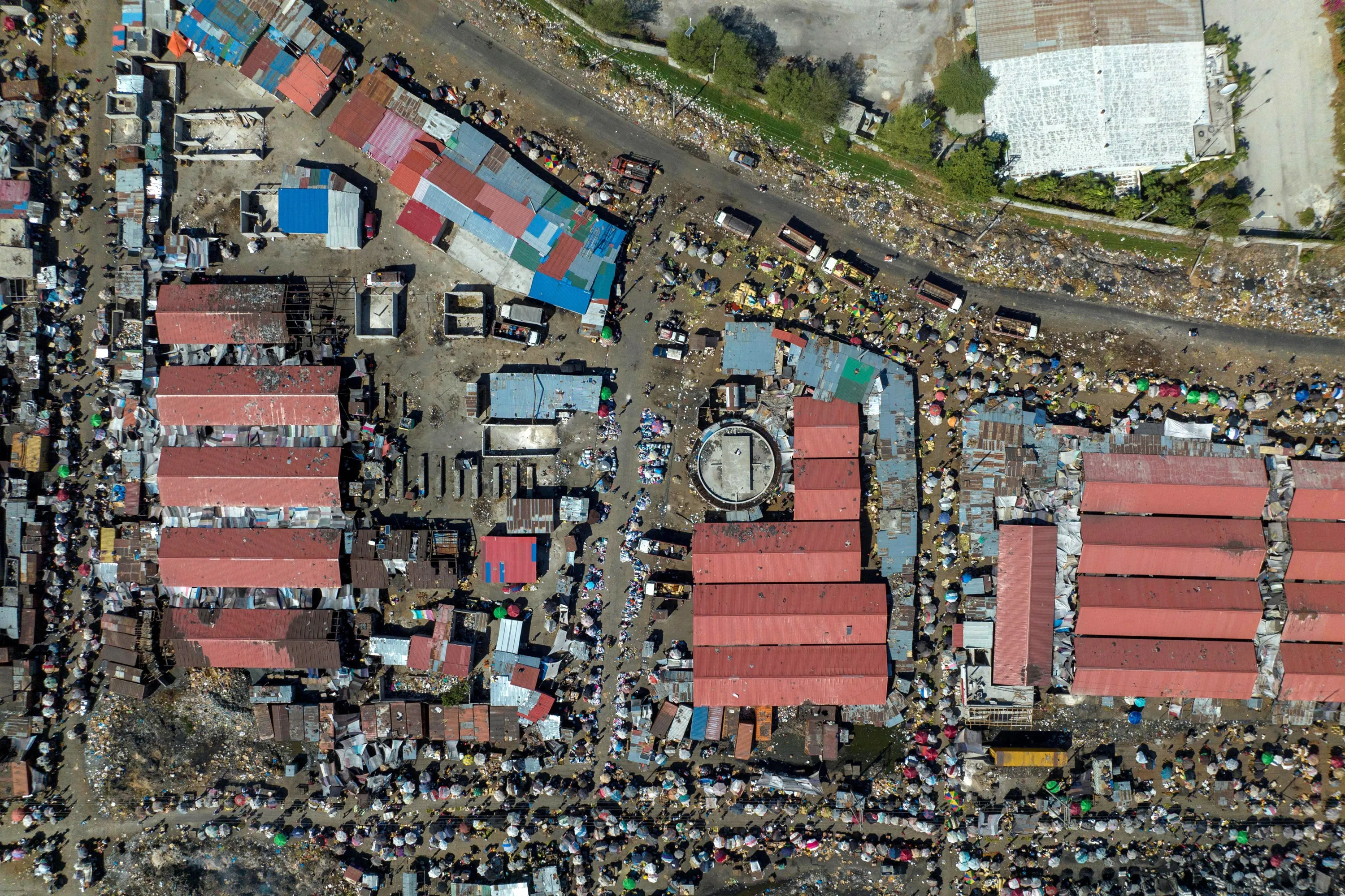 Aerial view of the Solidarite Market in La Saline days after Haiti police blocked streets and broke into the airport during a protest demanding justice for fellow police officers killed by armed gangs, in Port-au-Prince, Haiti on January 30,2023. (Photo by Ricardo Arduengo/Reuters)