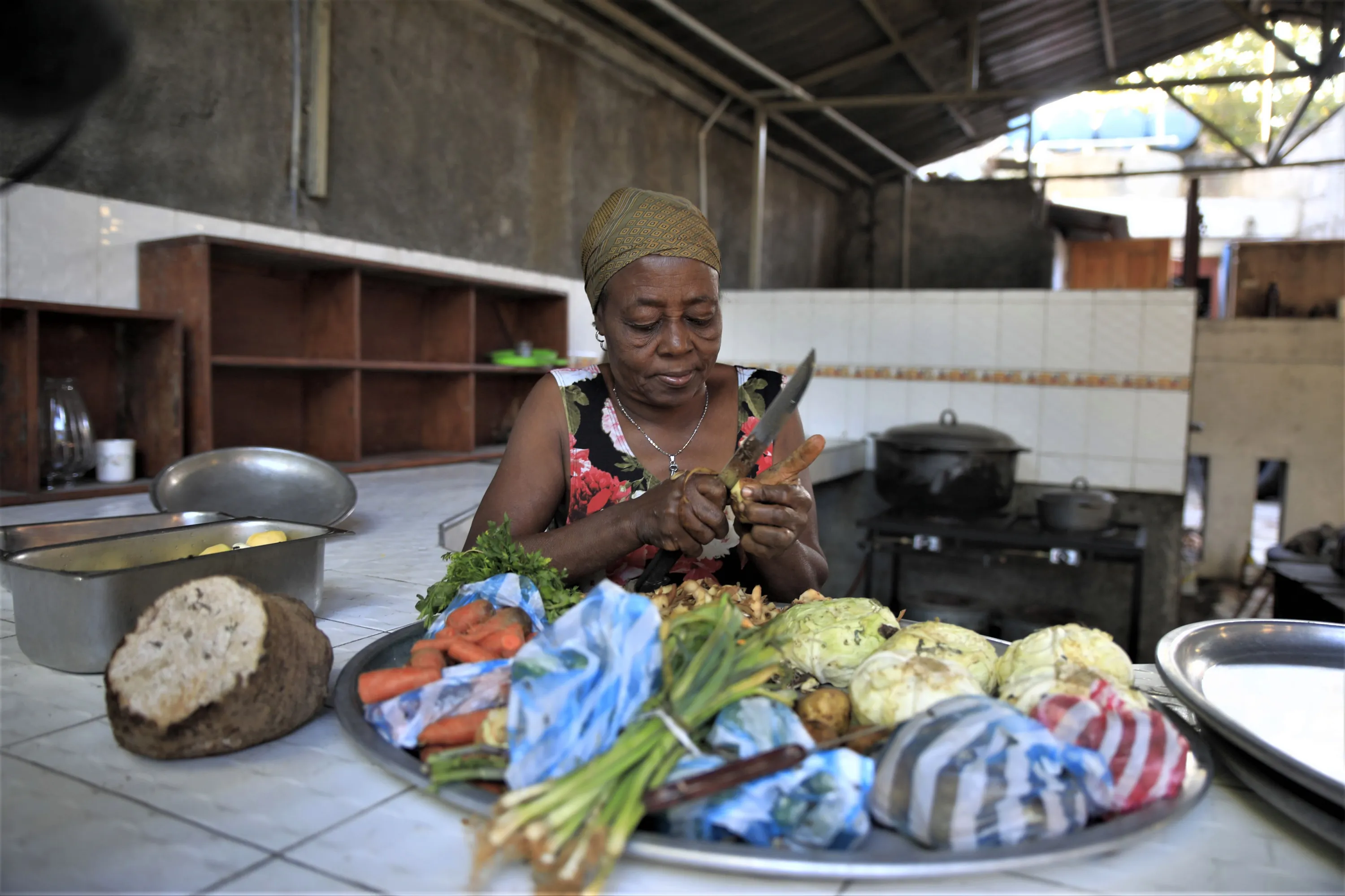 Rose Felicien 62, known as Tiwoz prepare ingredients to make soup joumou, at a restaurant in the Delmas district of Port-au-Prince, Haiti, Sunday, February 5, 2023. Made of pumpkin, beef, carrots, cabbage, ingredients produced on the island, soup joumou is a cultural staple in Haiti. (Photo by Joseph Odelyn/AP Photo)