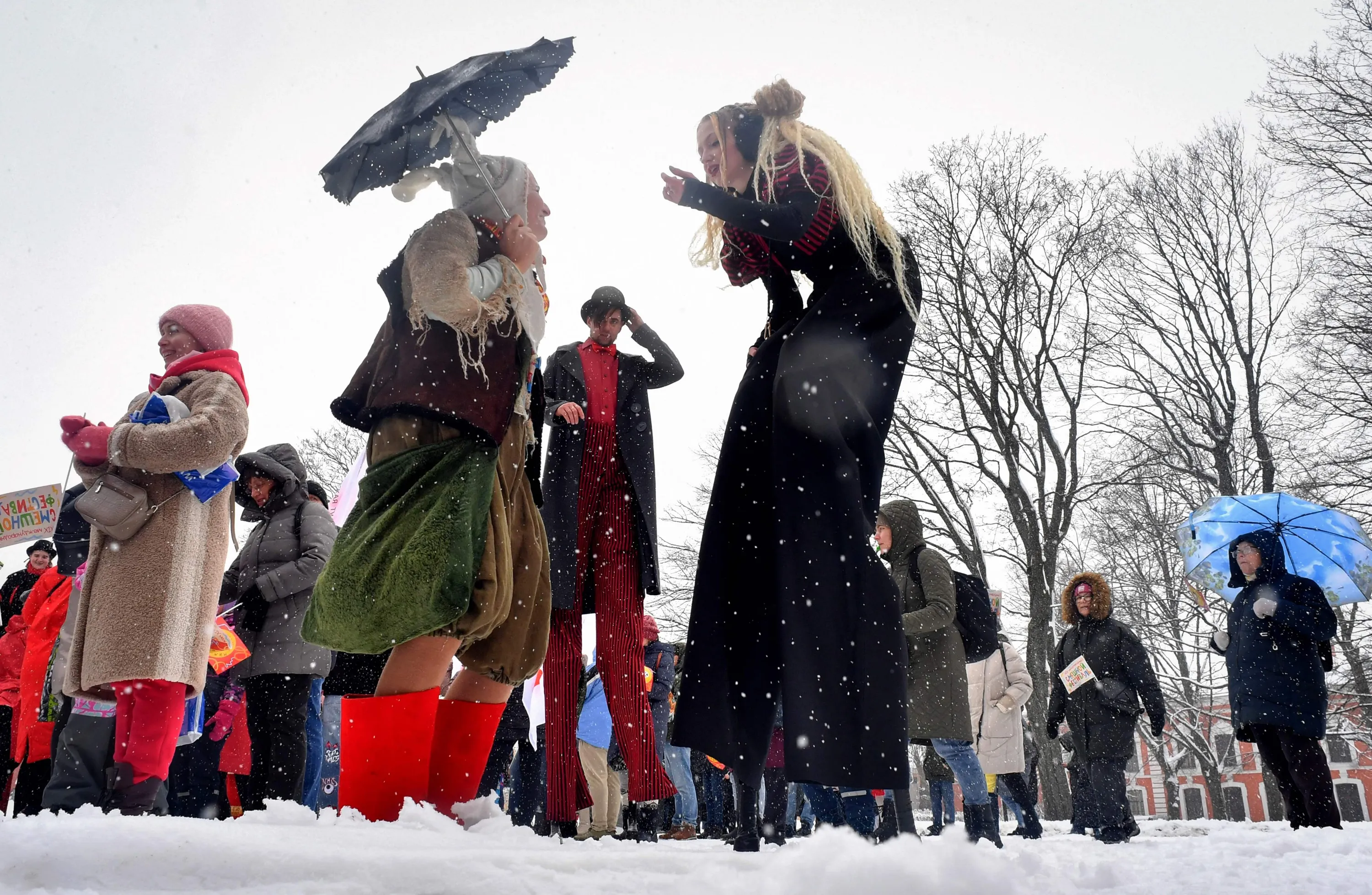 Clowns and mimes perform during April Fools' Day celebrations in Saint Petersburg, Russia, on April 1, 2023. (Photo by Olga Maltseva/AFP Photo)