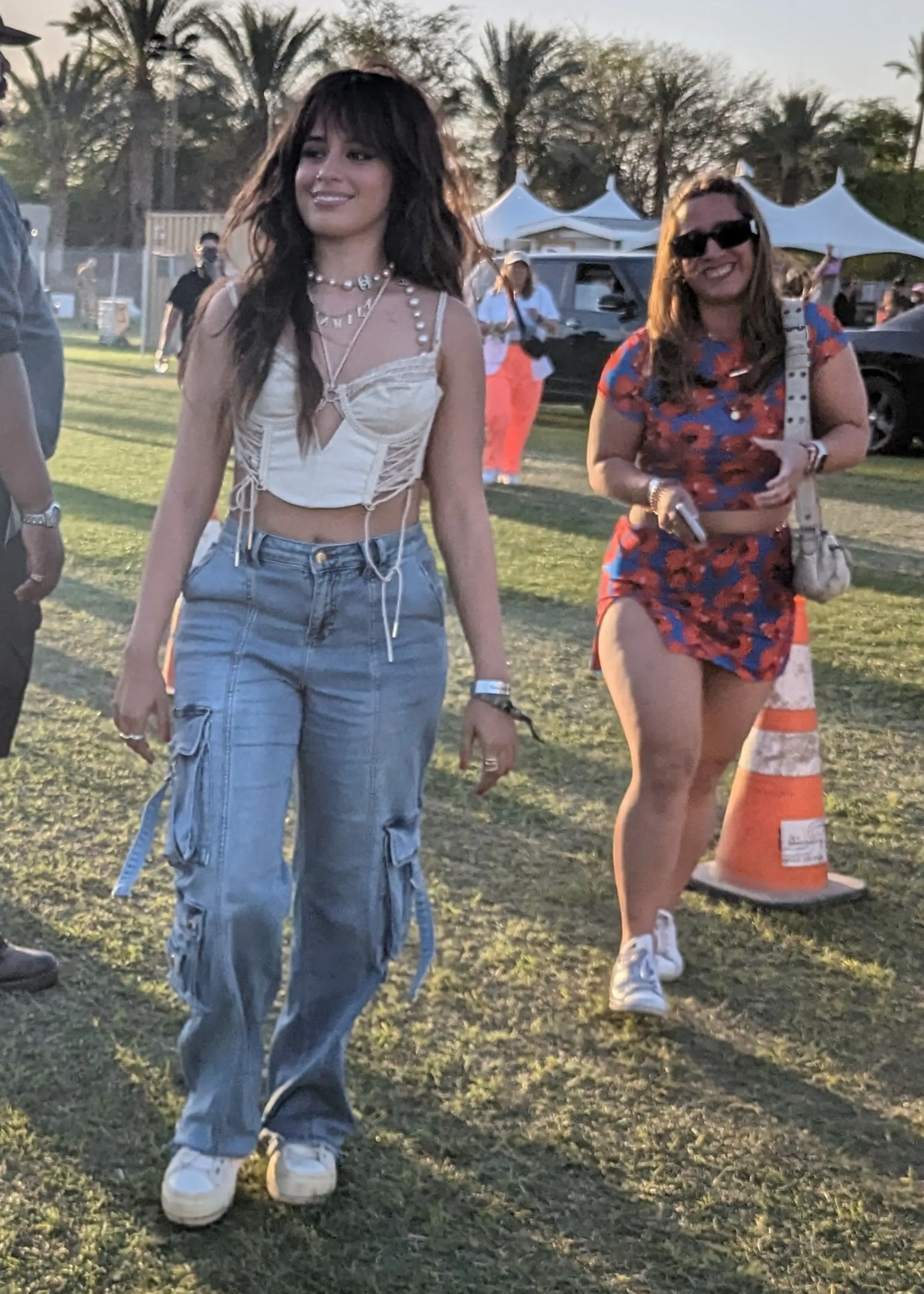Cuban-American singer-songwriter Camila Cabello is seen arriving just moments before reconnecting with Shawn Mendes inside Coachella for Bad Bunny concert in Indio on April 14, 2023. (Photo by Brian Prahl/The Mega Agency)
