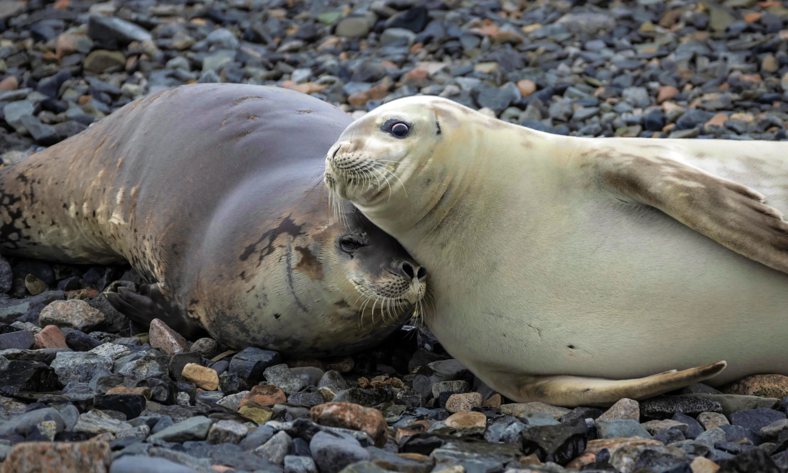 Crabeater seals are seen as Turkish scientists conduct fieldwork on Horseshoe Island within 7th National Antarctic Science Expedition under the coordination of the Scientific and Technological Research Council of Turkiye (TUBITAK) MAM Polar Research Institute with the joint responsibilities of the Turkish Presidency and Turkish Ministry of Industry and Technology in Antarctica, on February 16, 2023. Turkish Scientists, left a minimum footprint on Antarctica, “Continent of Science and Peace” took up the role of life's guardians by averting harm to the continent's environment and its surrounds. (Photo by Sebnem Coskun/Anadolu Agency via Getty Images)