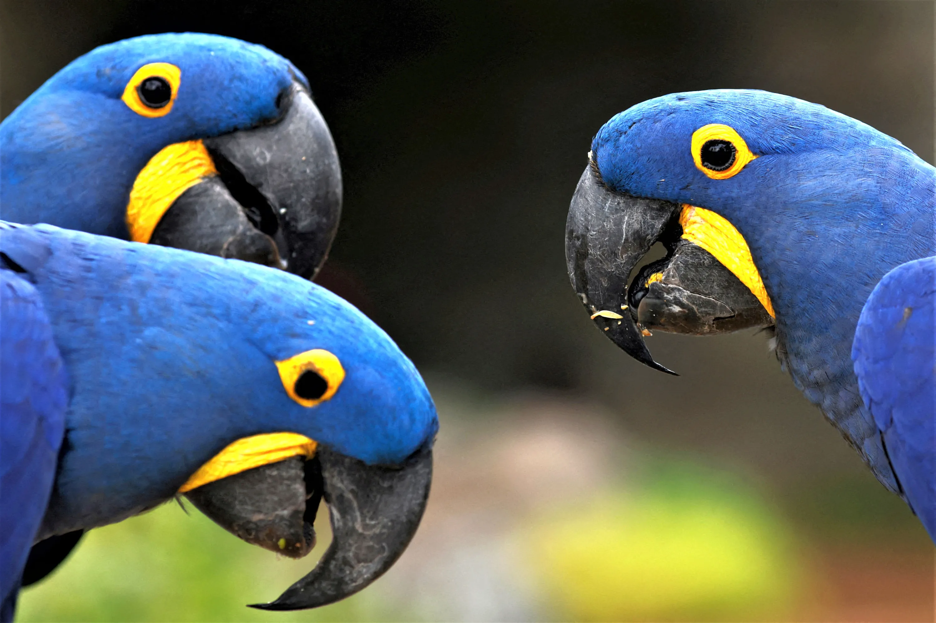Hyacinth macaws feed during a media tour of Bird Paradise, a new 17-hectare bird park that houses 3,500 birds from 400 species, at the Mandai Wildlife Reserve in Singapore on April 21, 2023. (Photo by Edgar Su/Reuters)