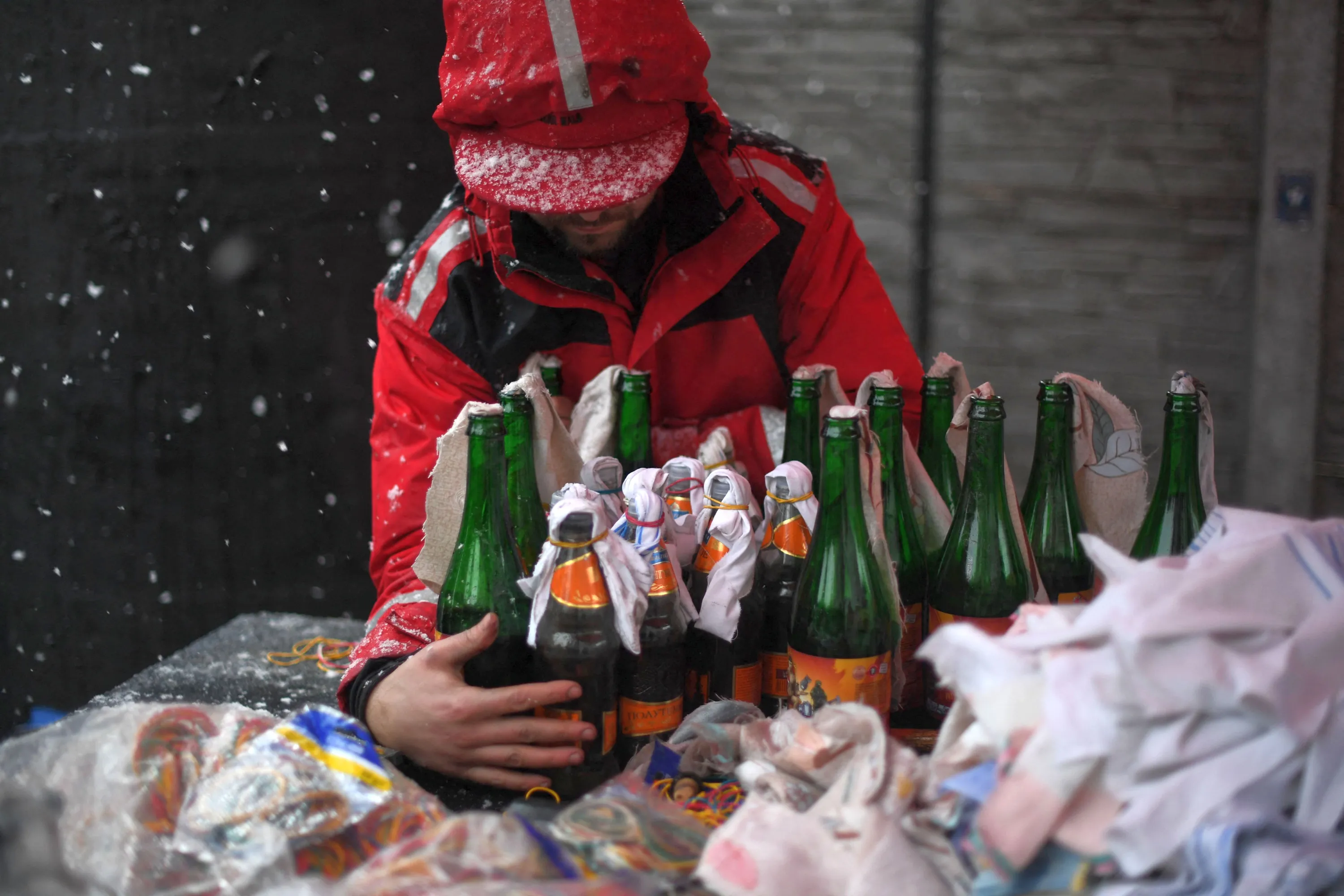 A volunteer demonstrates the preparation of Molotov cocktails at the Pravda – (Truth) brewery in Lviv on February 27, 2002. Ukraine said that it had agreed to talks with Russia after four days of conflict, as Russian President Vladimir Putin ordered his defence chiefs to put nuclear “deterrence forces” on alert. The conflict has already killed dozens of civilians, forced hundreds of thousands to flee and turned Moscow into a global pariah. (Photo by Daniel Leal/AFP Photo)