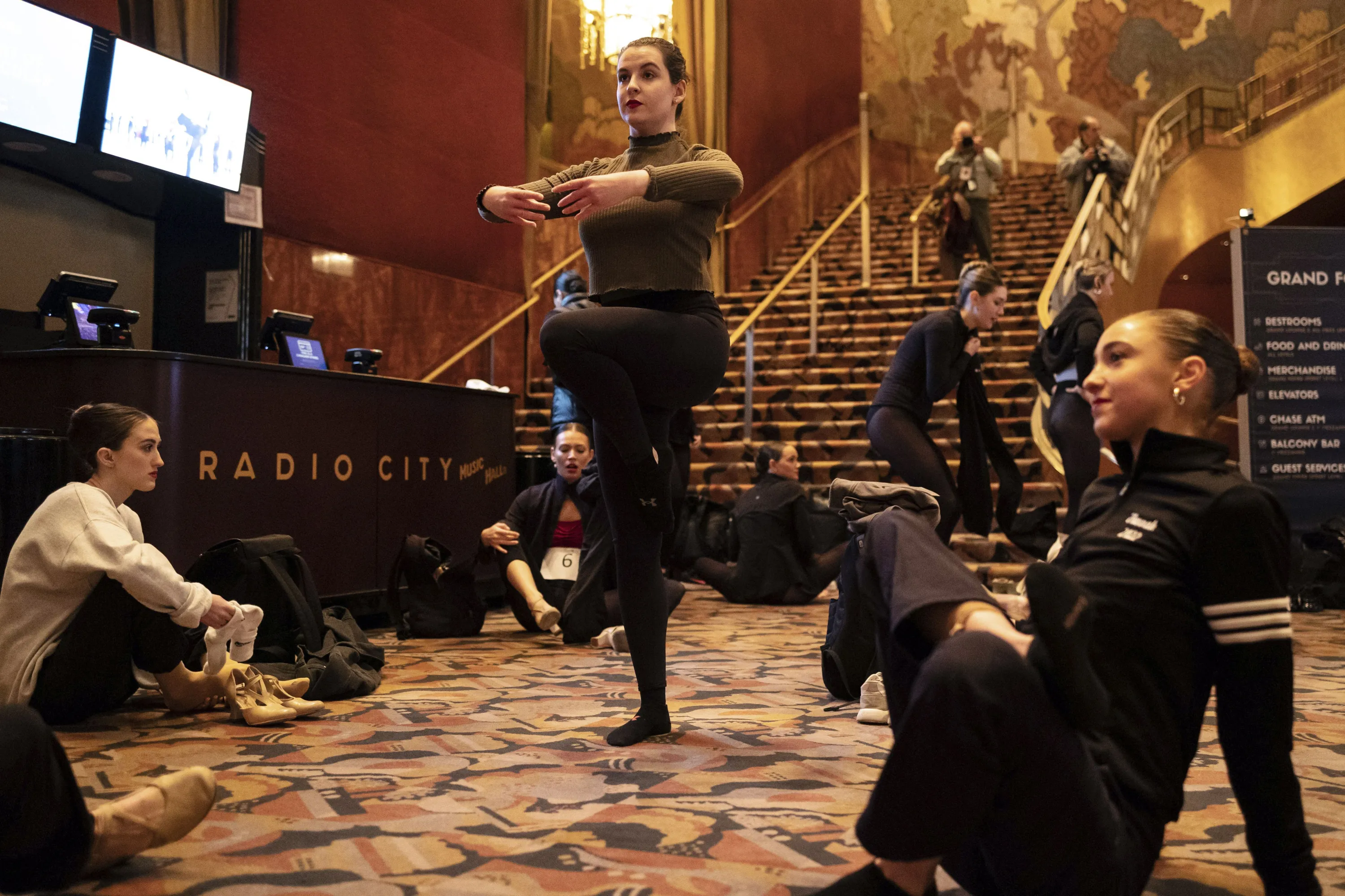 Dancers stretch ahead of auditions for a spot on the Rockettes line for the “2023 Christmas Spectacular Starring the Radio City Rockettes” at Radio City Music Hall in New York, Thursday, April 20, 2023, in New York. (Photo by Yuki Iwamura/AP Photo)