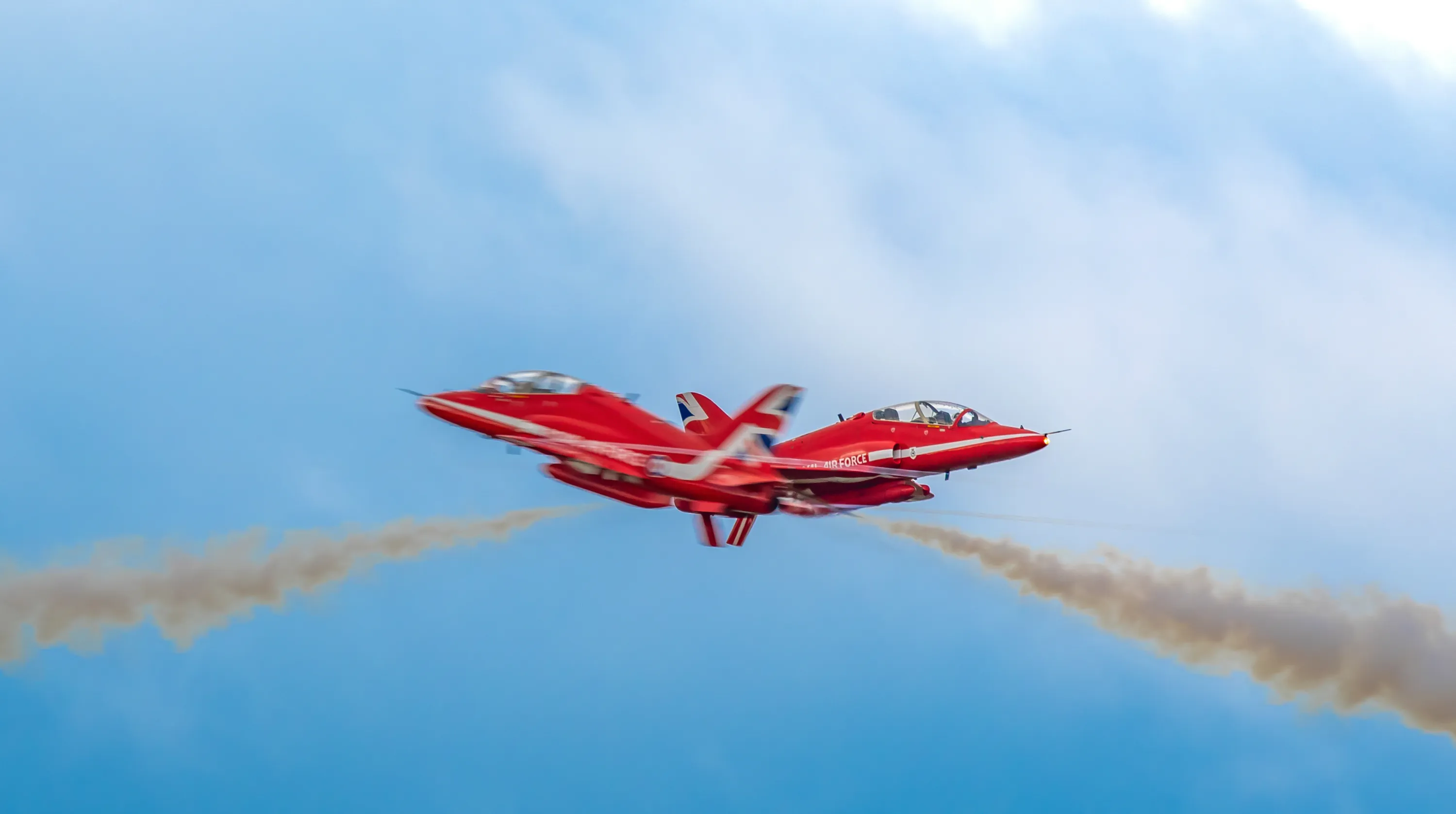 The picture dated February 20, 2023 shows the Red Arrows rehearsing at RAF Scampton in Lincolnshire. The planes twisted and turned in the skies as they prepared for their summer airshows. (Photo by Claire Hartley/Bav Media)