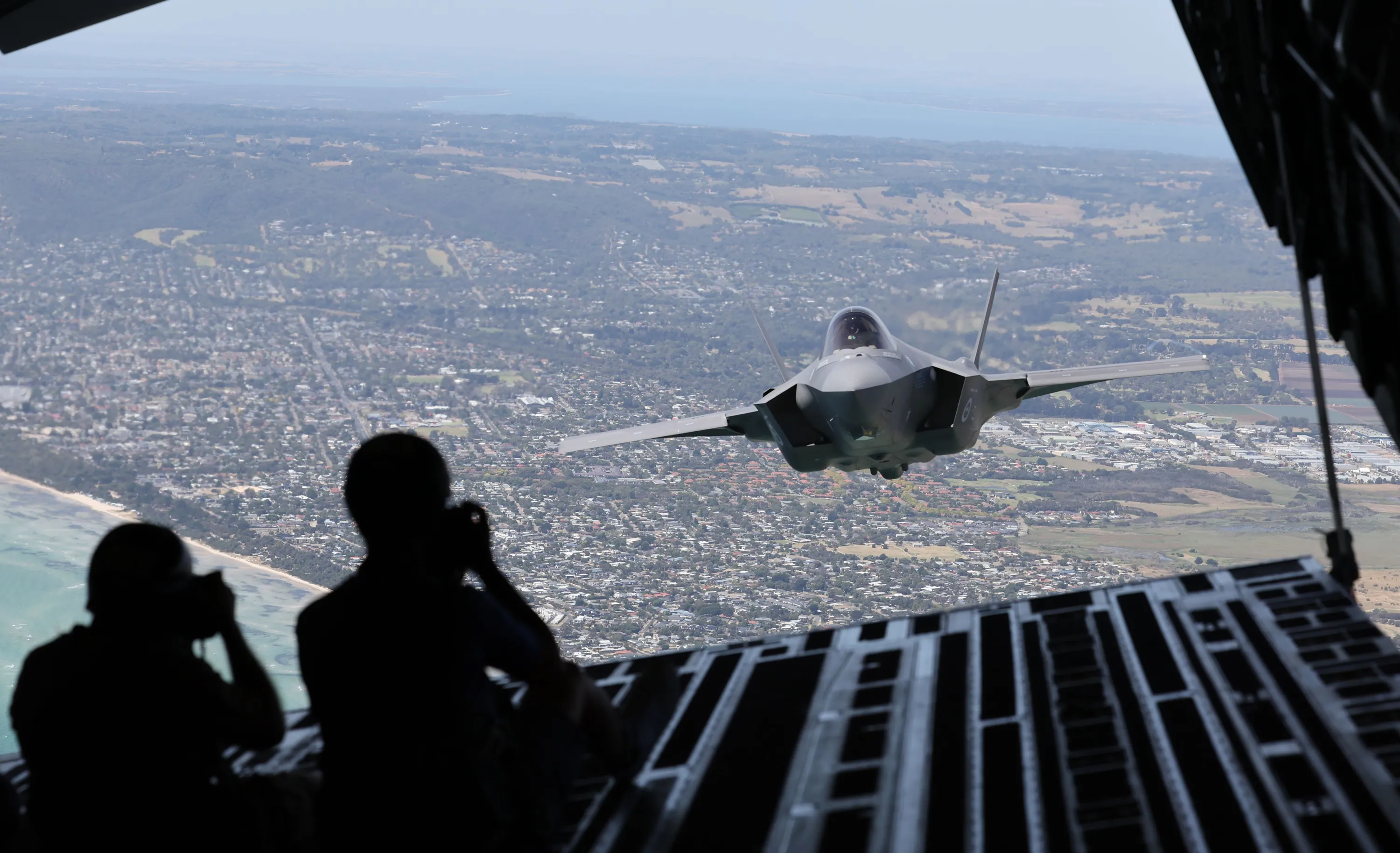 The RAAF F-35A flies over Melbourne during a media preview ahead of the 2023 Australian International Airshow on February 24, 2023 in Melbourne, Australia. The Australian International Airshow opens to the public March 3 – March 5, 2023. (Photo by Alex Coppel/Getty Images)