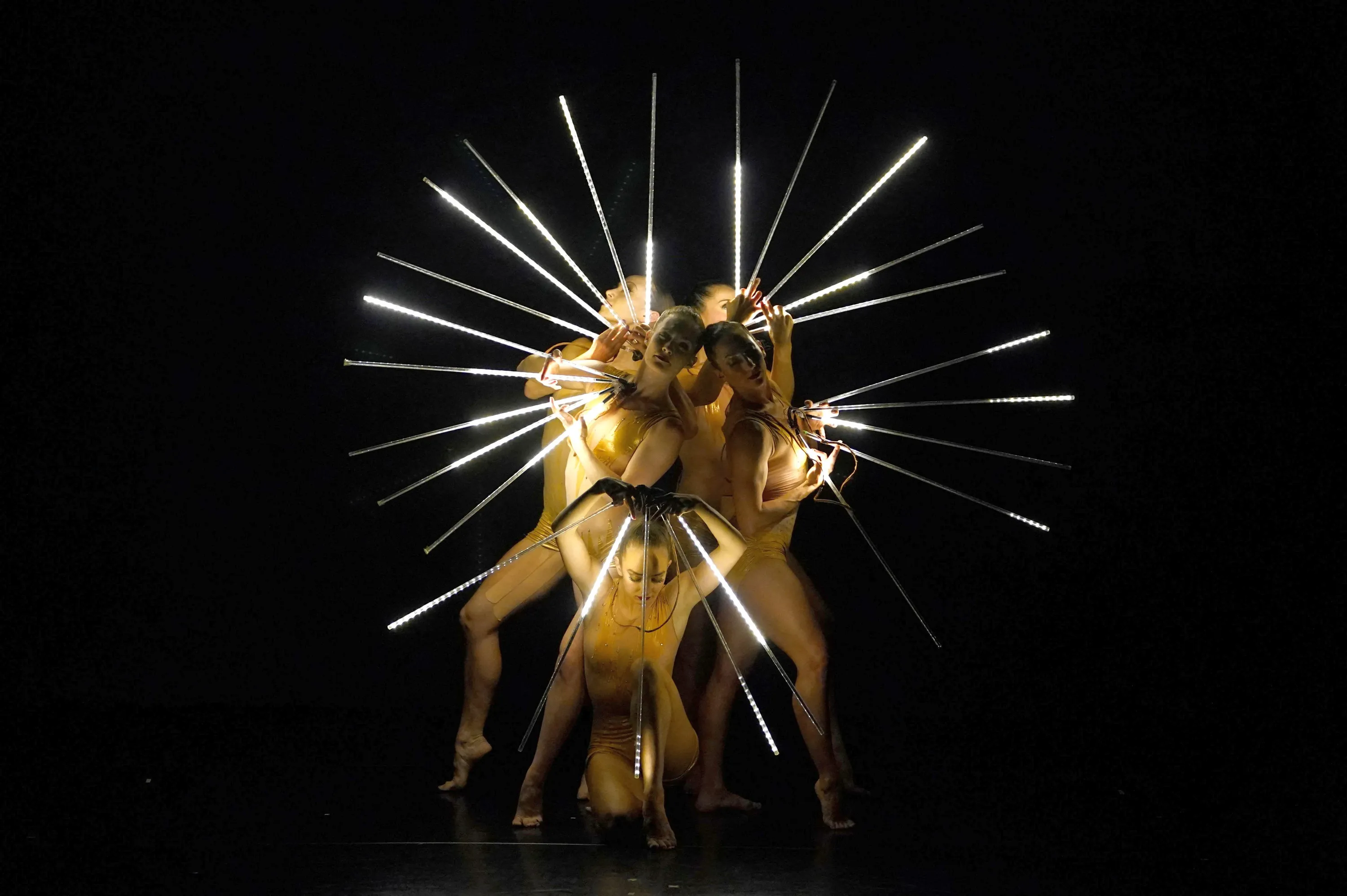 MOMIX dancers perform a scene from “Light Reigns” during a performance of Back to MOMIX at the Queens Theatre in New York April 23, 2023. MOMIX, a dance company based in Washington, Connecticut, was founded in 1981 by Choreographer Moses Pendleton. (Photo by Timothy A. Clary/AFP Photo)