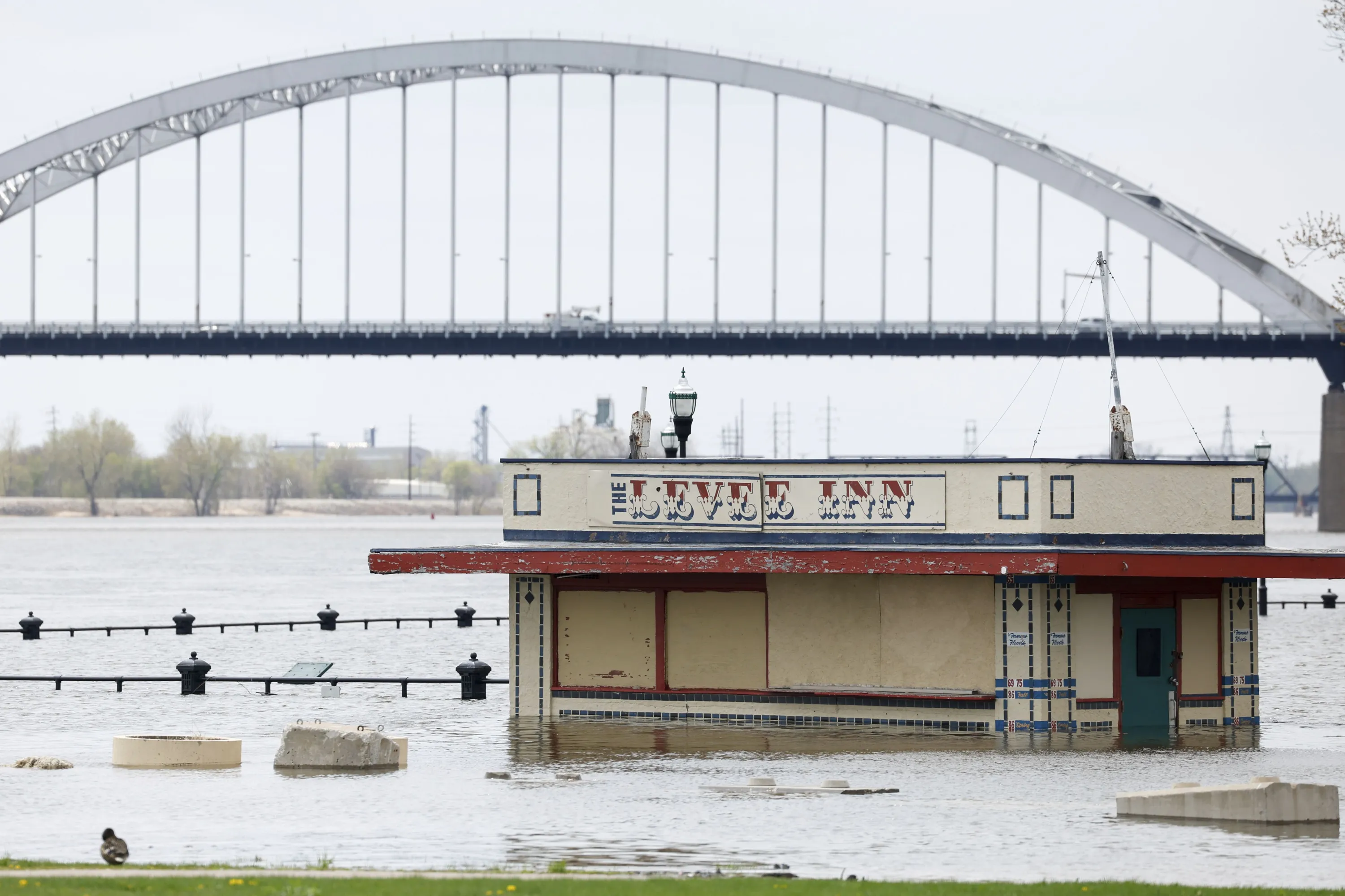 The Levee Inn is partially submerged by the rising Mississippi River, Monday, April 24, 2023, Davenport, Iowa. (Photo by Niko Frazer/Quad City Times via AP Photo)