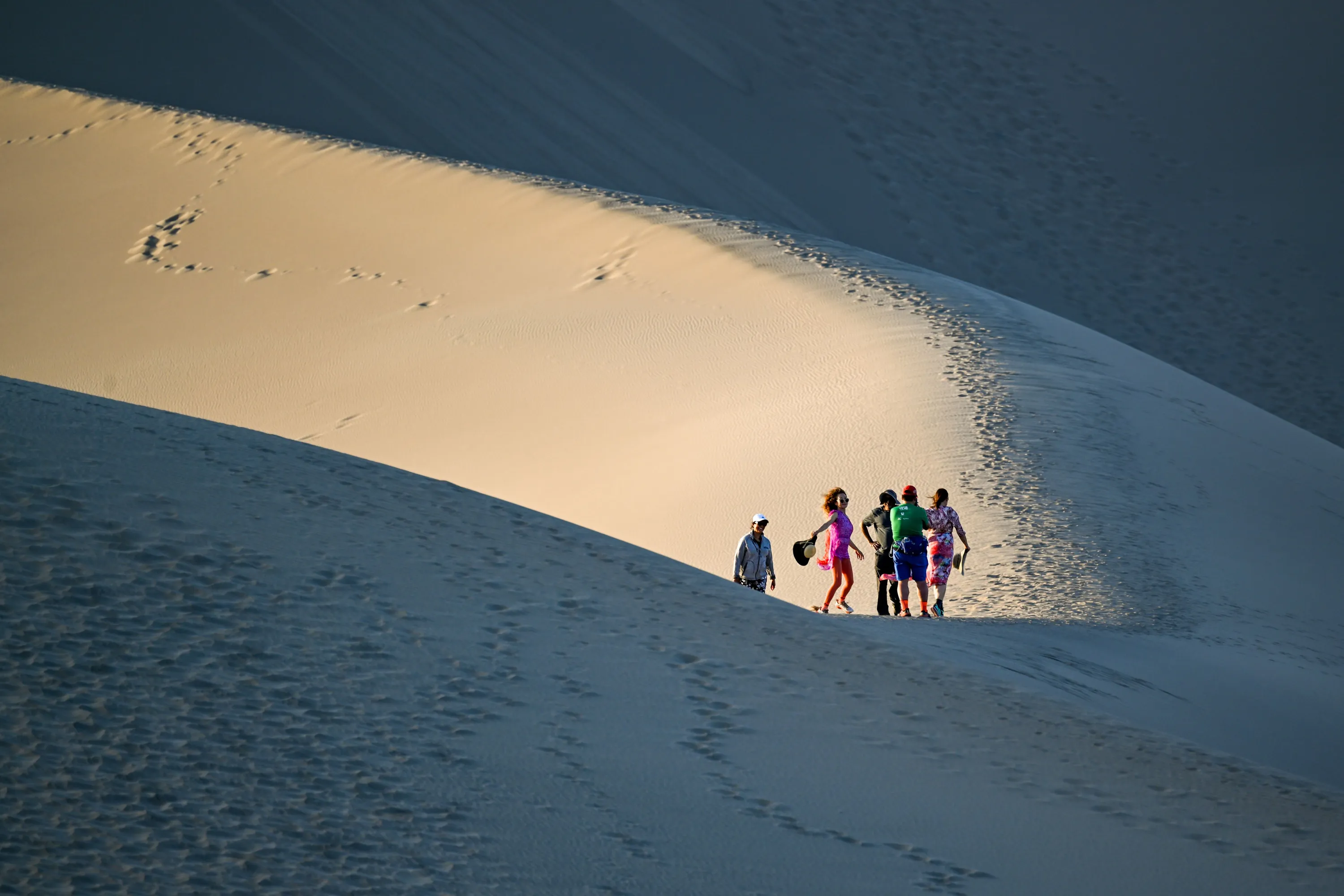 Tourists are seen at Mesquite Flat Sand Dunes during sunset in Death Valley National Park of California, United States on April 23, 2023. (Photo by Tayfun Coskun/Anadolu Agency via Getty Images)