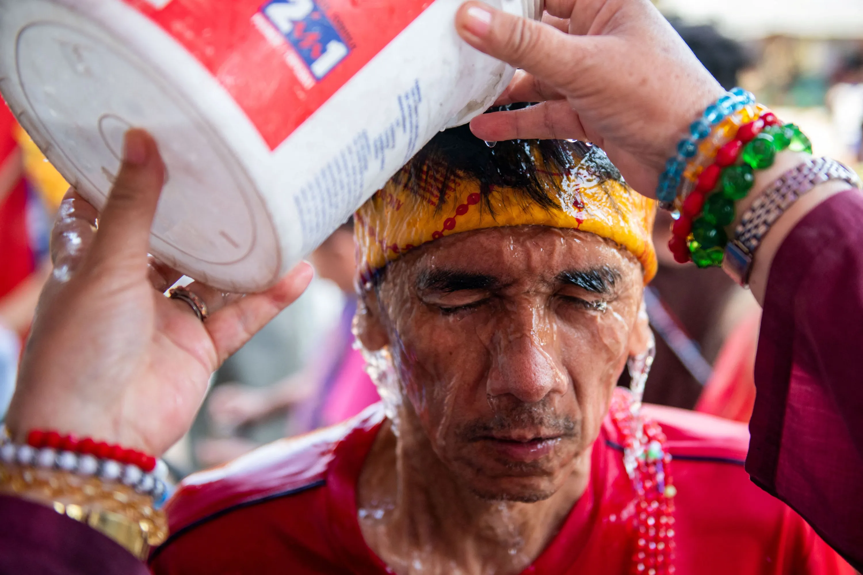 15 Mysteries Catholic Lay Missionaries founder Sister Jovita Domingo pours water to a devotee during a ritual on Good Friday, in San Miguel, Bulacan province, Philippines, April 7, 2023. (Photo by Lisa Marie David/Reuters)