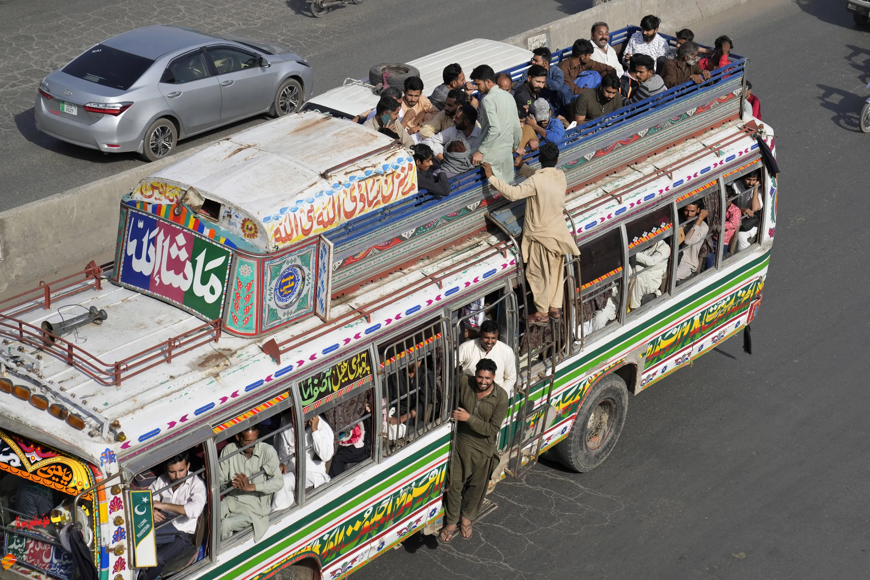 People travel on an over loaded bus to reach their villages and cities to celebrate the upcoming Eid al-Fitr holidays, marking the end of the Islamic holy month of Ramadan, in Lahore, Pakistan, Thursday, April 20, 2023.. (Photo by K.M. Chaudary/AP Photo)