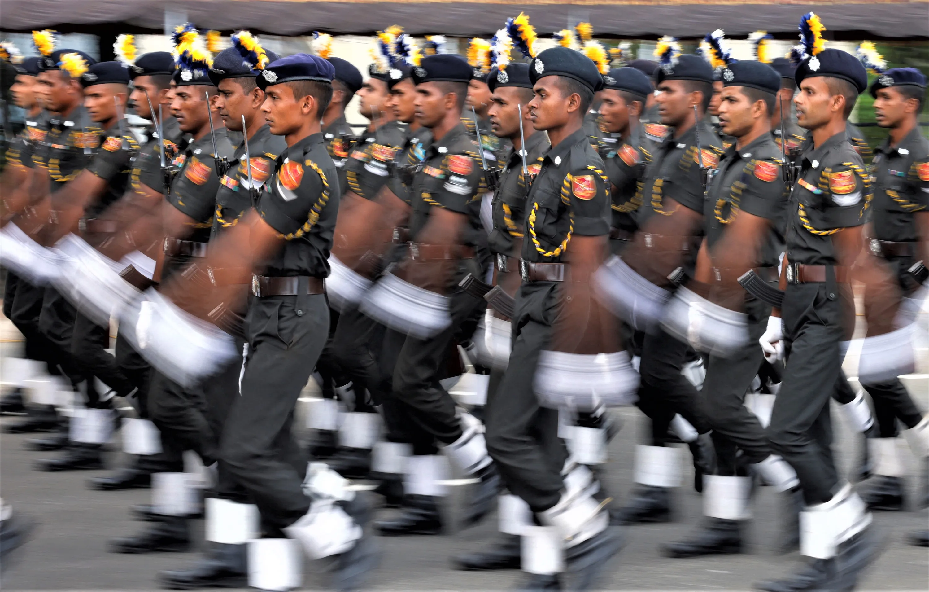Members of the army take part in a military parade during a rehearsal ahead of Sri Lanka's 75th Independence Day celebrations in Colombo, Sri Lanka on February 2, 2023. (Photo by Dinuka Liyanawatte/Reuters)