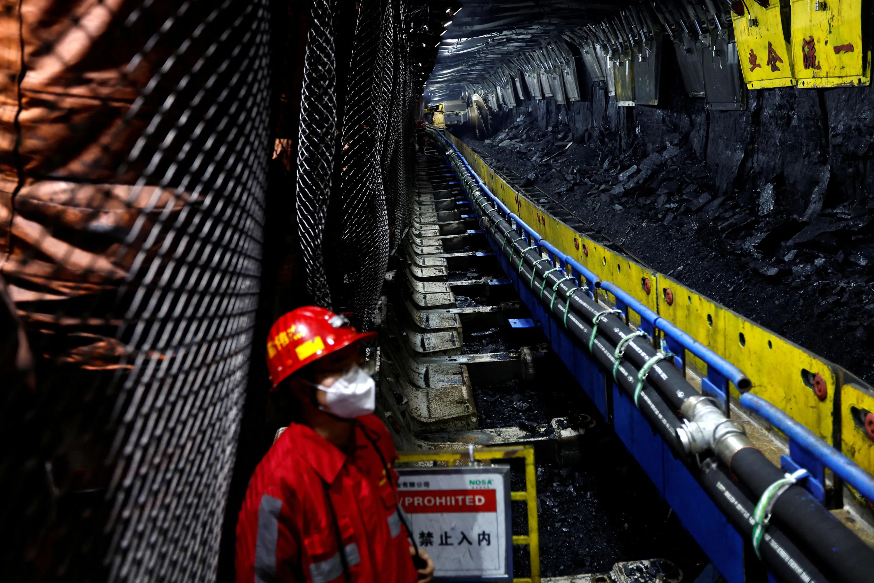 A media reporter stands at an underground coalface where Huawei 5G base stations are deployed to support communication and remote control, at Xiaobaodang Coal Mine, during a Huawei-organised media tour, in Shenmu of Yulin city, Shaanxi province, China on April 26, 2023. (Photo by Tingshu Wan/Reuters)