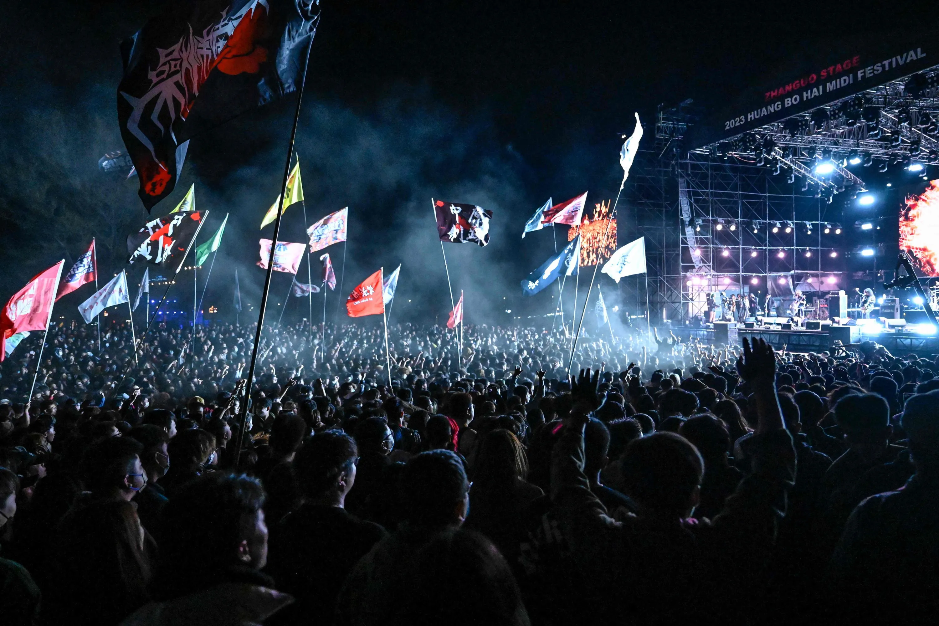 People attend the Midi music festival in Yantai, Shandong province on April 29, 2023. (Photo by Jade Gao/AFP Photo)