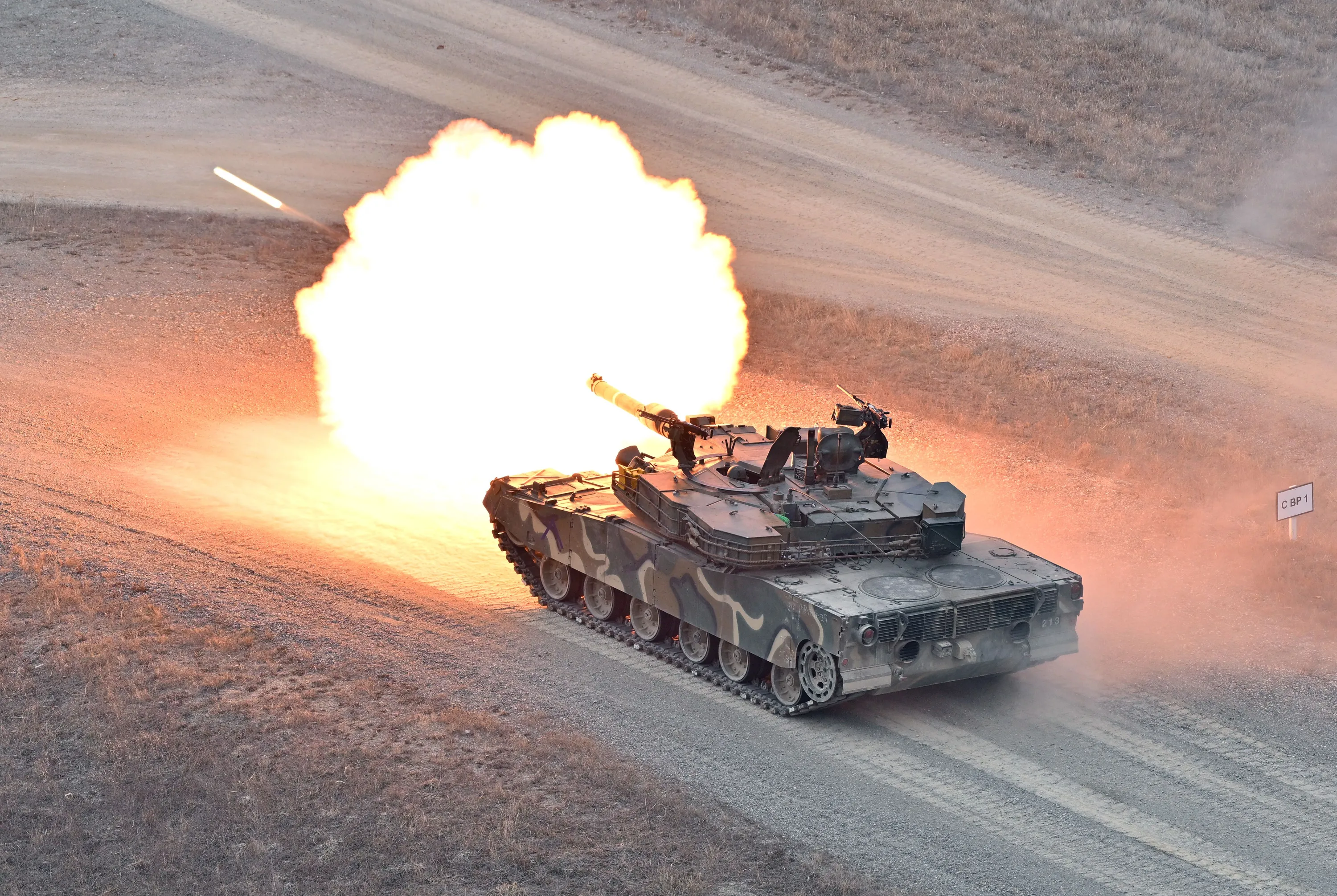 A South Korean K1A1 tank fires during a Warrior Shield live fire exercise at a military training field in Pocheon on March 22, 2023, as part of the Freedom Shield joint military exercise. South Korea and the United States kicked off the Freedom Shield joint military exercise, their largest drills in five years, which will run for 10 days from March 13, 2023 as part of the allies drive to counter North Korea's growing threats. (Photo by Jung Yeon-je/AFP Photo)