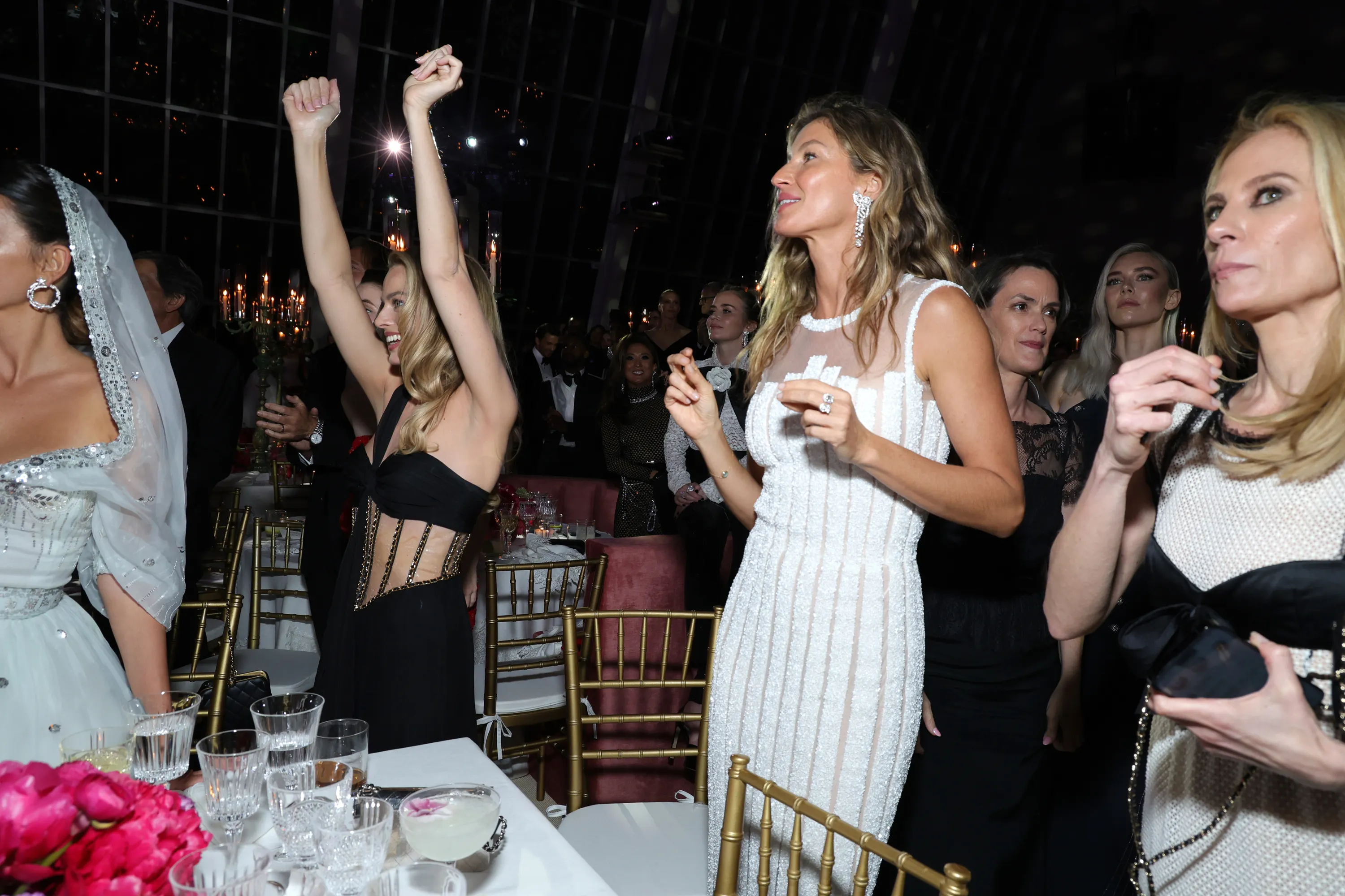(L-R) Australian actress Margot Robbie and Brazilian fashion model Gisele Bündchen attend The 2023 Met Gala Celebrating “Karl Lagerfeld: A Line Of Beauty” at The Metropolitan Museum of Art on May 01, 2023 in New York City. (Photo by Kevin Mazur/MG23/Getty Images for The Met Museum/Vogue)