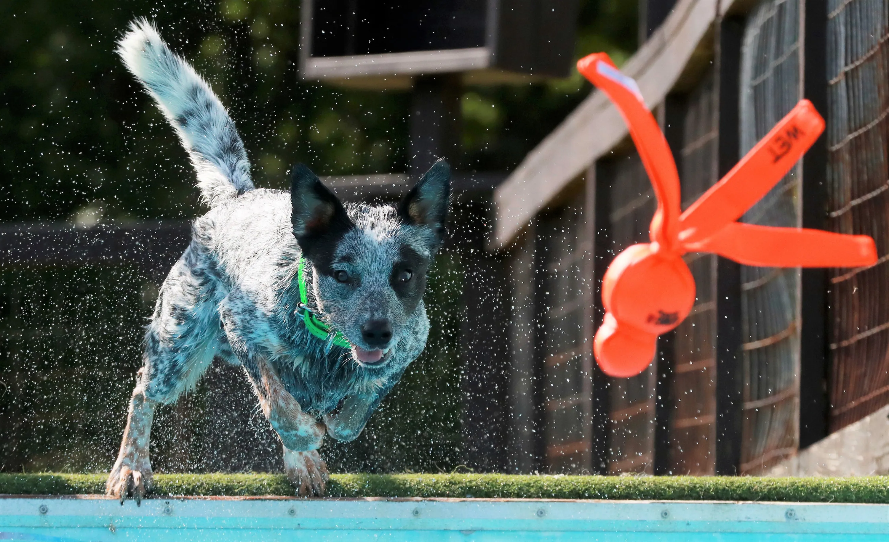 Carolina DockDogs hold their first members practice of the season at Indian Creek K9 Aquatics in Goldston, NC on April 23, 2023. Carolina DockDogs is a sanctioned affiliate club of DockDogs World Wide. Dock jumping, also known as dock diving is a sport in which dogs compete in jumping for distance or height from a dock into a body of water with competitions that include Big Air, Speed Retrieve, Extreme Vertical & Iron Dog. (Photo by Bob Karp/Avalon)