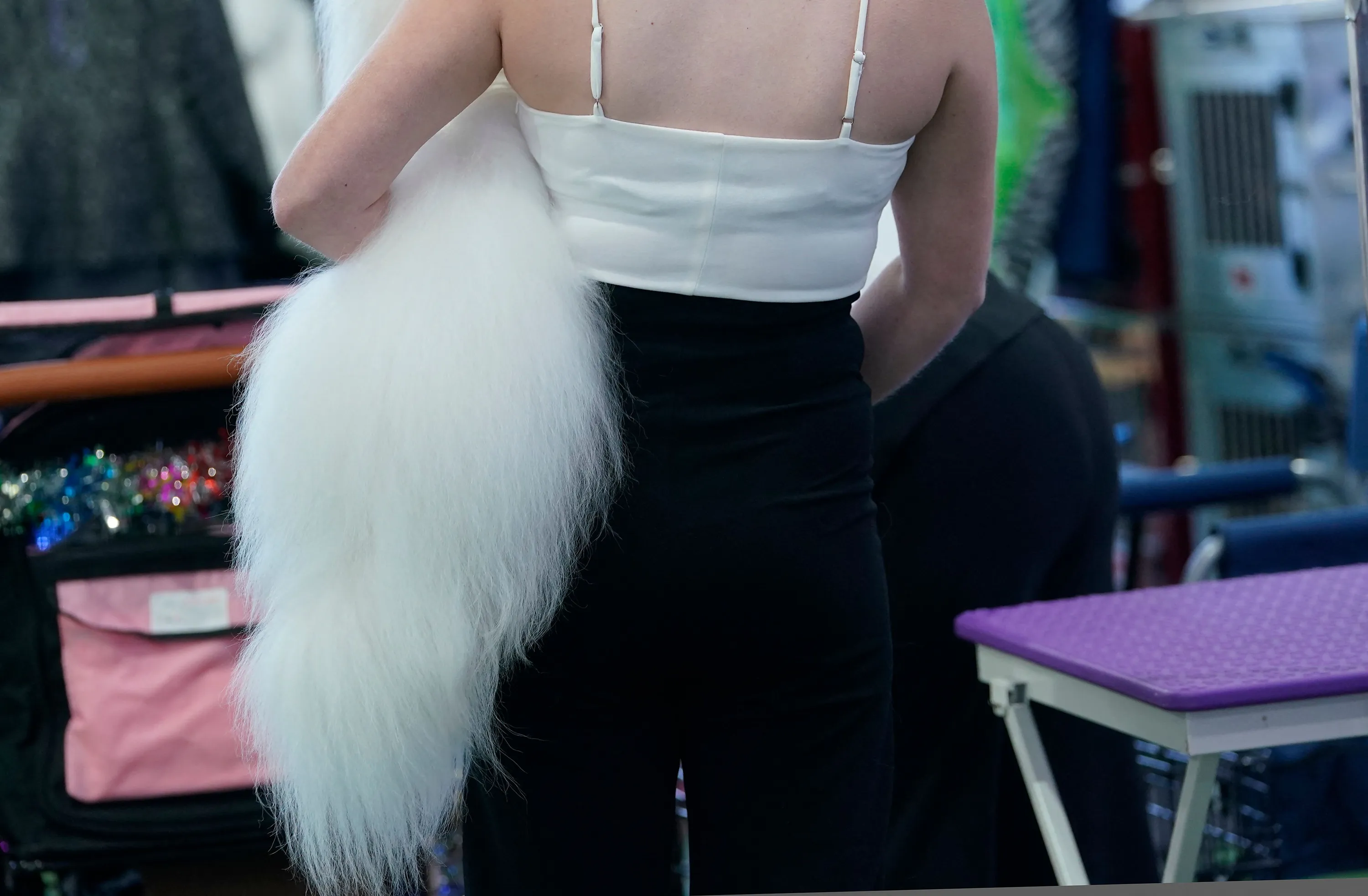 Coton de Tulear in the Benching Area during the Annual Westminster Kennel Club Dog Show judging of Hound, Toy, Non-Sporting and Herding breeds and Junior Showmanship at the Arthur Ashe Stadium in New York City on May 8, 2023. (Photo by Timothy A. Clary/AFP Photo)