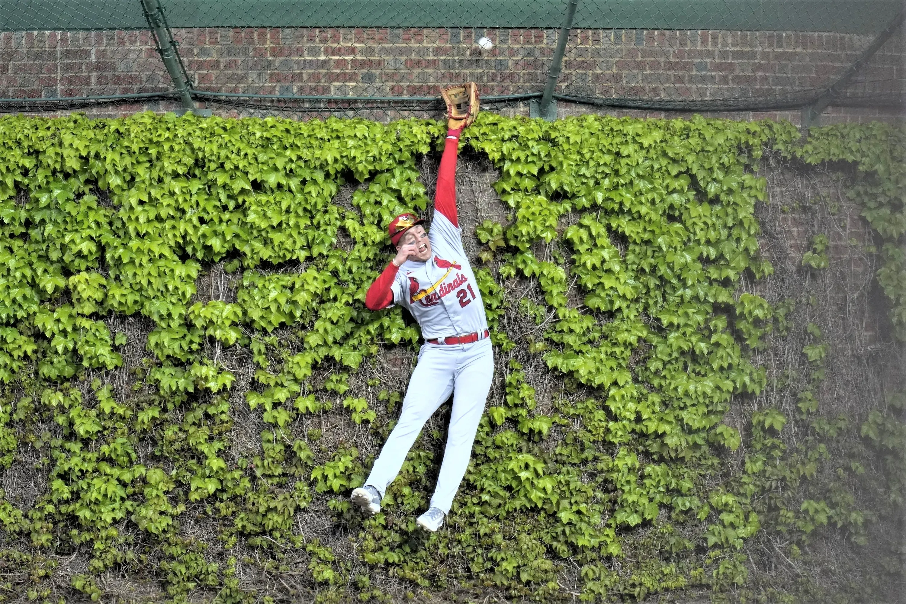 St. Louis Cardinals center fielder Lars Nootbaar can't catch a home run by Chicago Cubs' Dansby Swanson during the third inning of a baseball game Tuesday, May 9, 2023, in Chicago. (Photo by Erin Hooley/AP Photo)