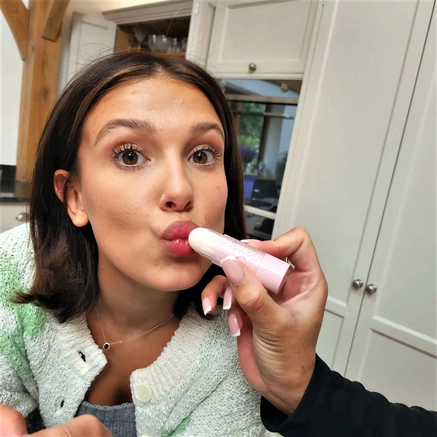 British actress Millie Bobby Brown early May 2023 puckers up. (Photo by milliebobbybrown/Instagram)