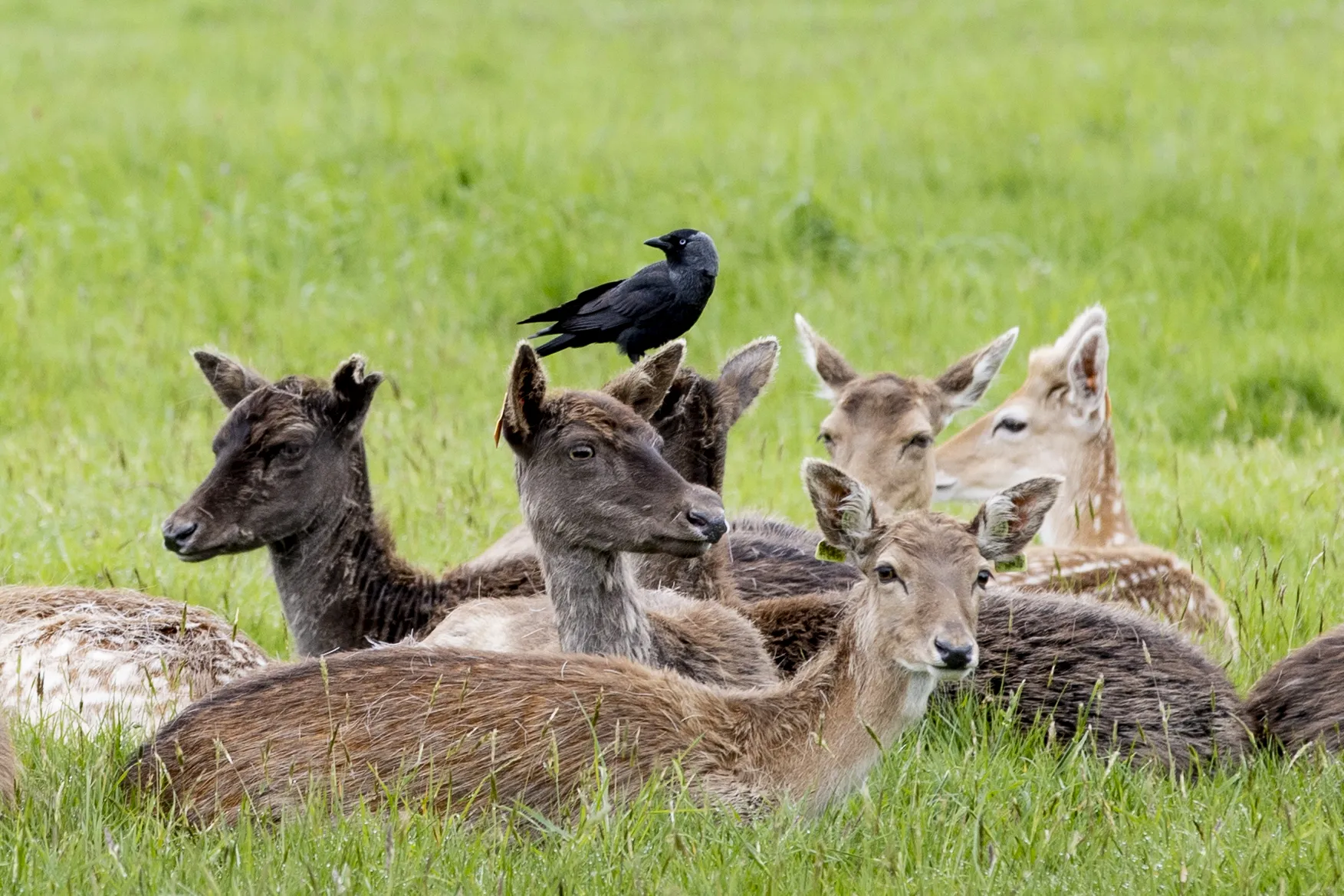 A Fallow Deer pictured with a blackbird on its head in the Phoenix Park, Dublin, Ireland on May 12, 2023. (Photo by Tom Honan/The Irish Times)