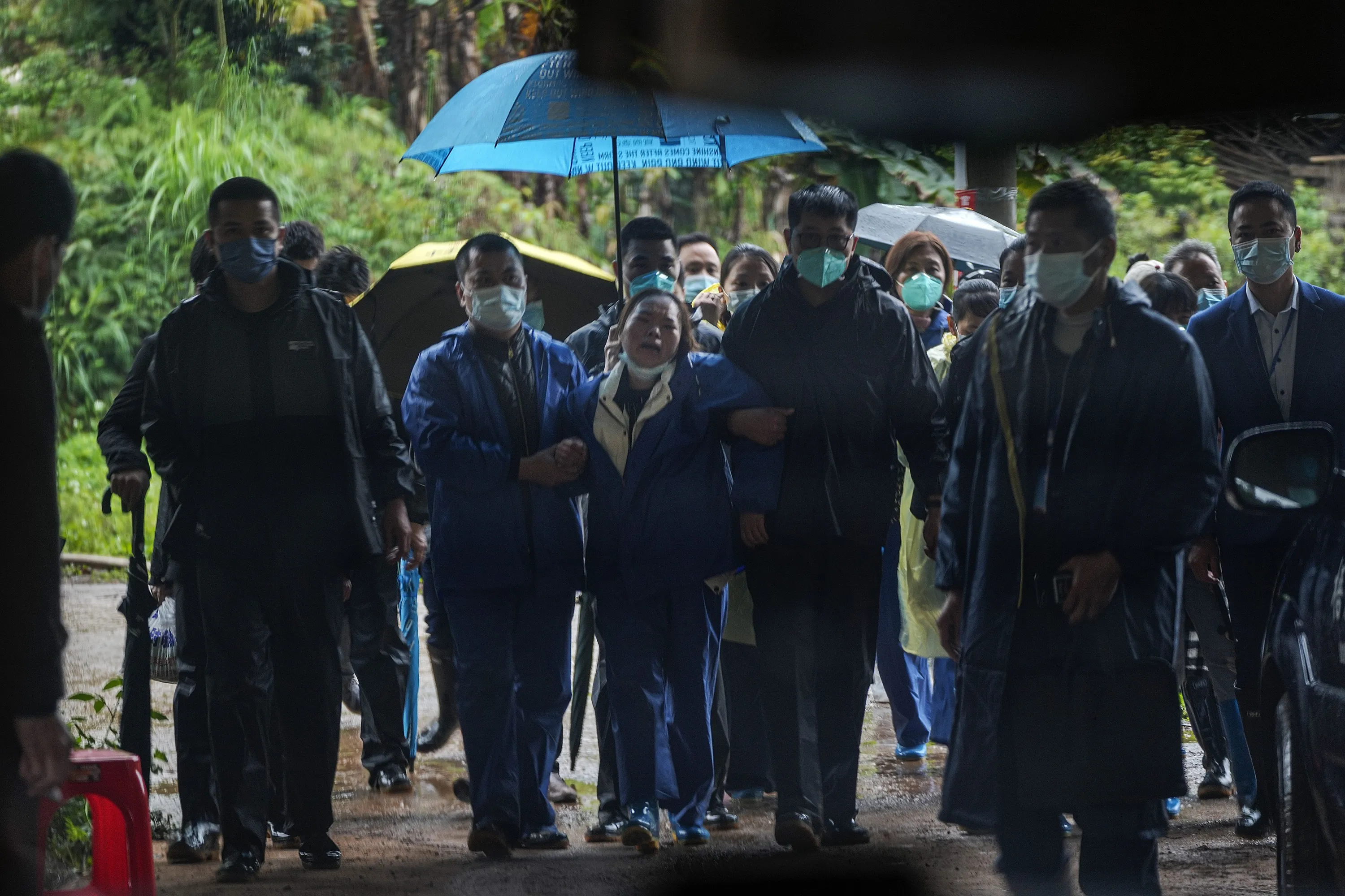 A relative of passengers onboard the China Eastern Flight 5735 cries as she is escorted near the crash site, Thursday, March 24, 2022, in Shentian village, southwestern China's Guangxi province. The search area was expanded Thursday in a “blanket search” for the second black box from a China Eastern passenger plane that crashed in southern China with 132 people on board earlier this week, state media said. (Photo by Ng Han Guan/AP Photo)
