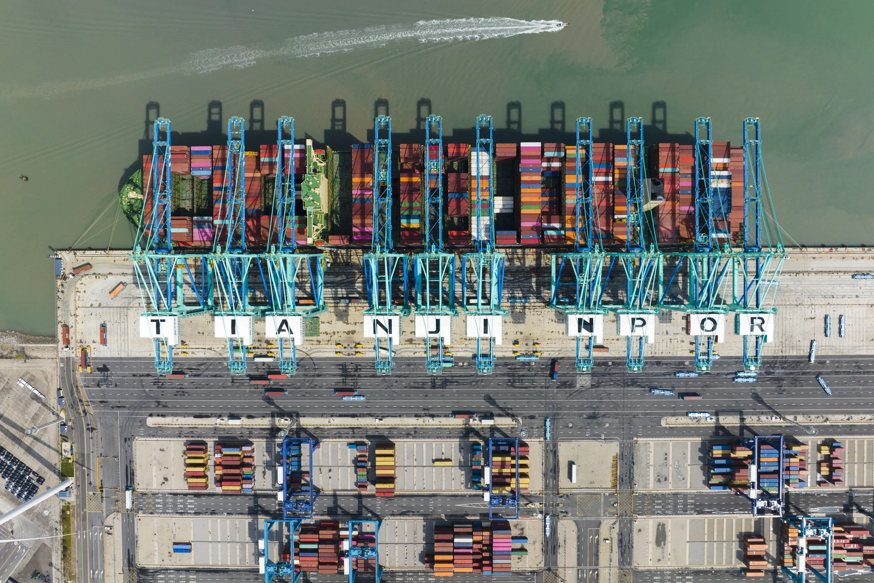 This aerial photo released by Xinhua News Agency, shows a container ship at the smart zero-carbon terminal of Tianjin Port in north China's Tianjin on April 6, 2023. China's exports rebounded unexpectedly to growth in March despite a decline in U.S. and European demand following higher interest rates to cool inflation. (Photo by Han Xilong/Xinhua via AP Photo)