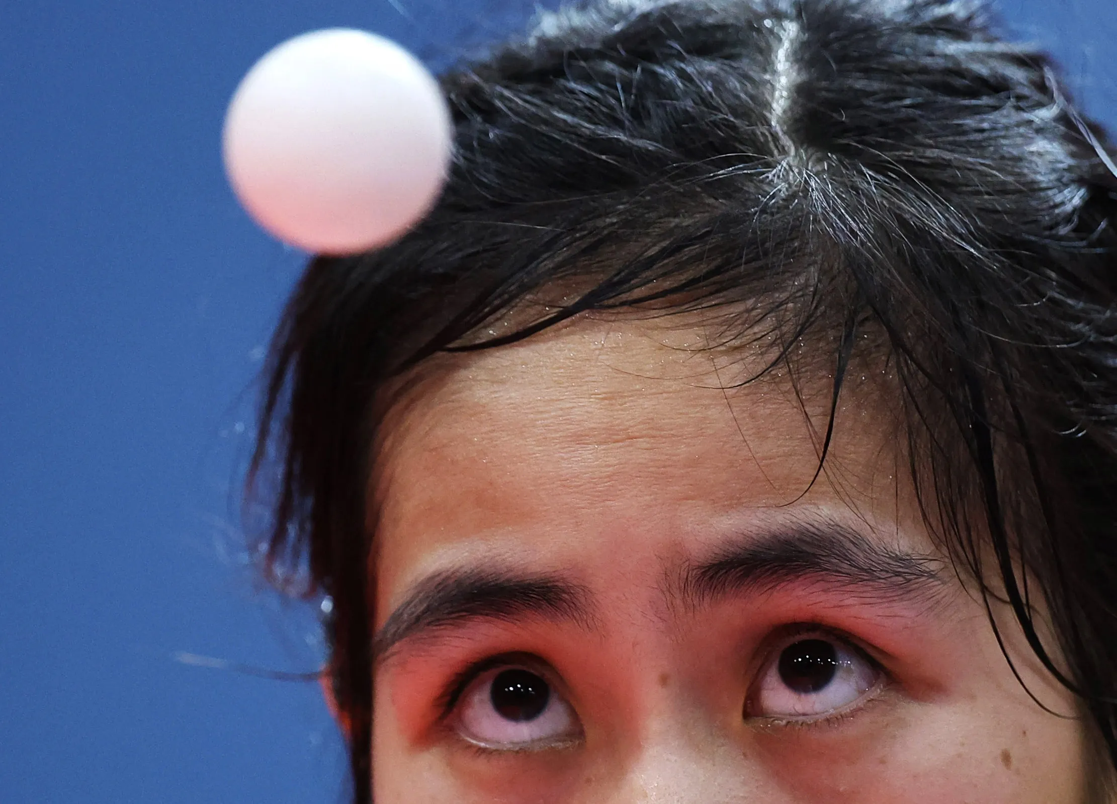 Thailand’s Suthasini Sawettabut keeps her eyes on the ball during the table tennis women’s singles final at the Southeast Asian Games in Cambodia on May 16, 2023. (Photo by Chalinee Thirasupa/Reuters)