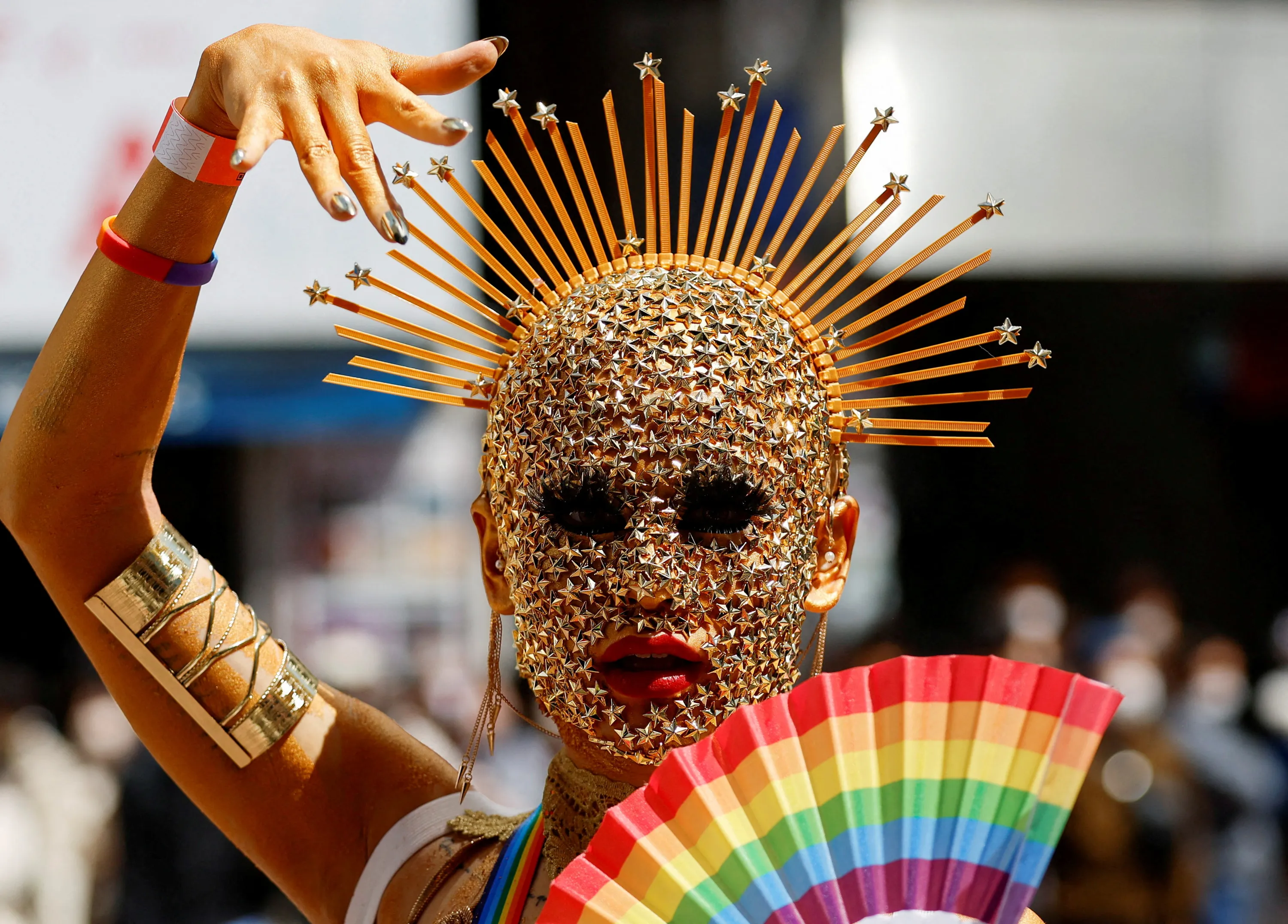A participant marches during the Tokyo Rainbow Pride parade, celebrating advances in LGBTQ rights and calling for marriage equality, in Tokyo, Japan on April 23, 2023. (Photo by Issei Kato/Reuters)