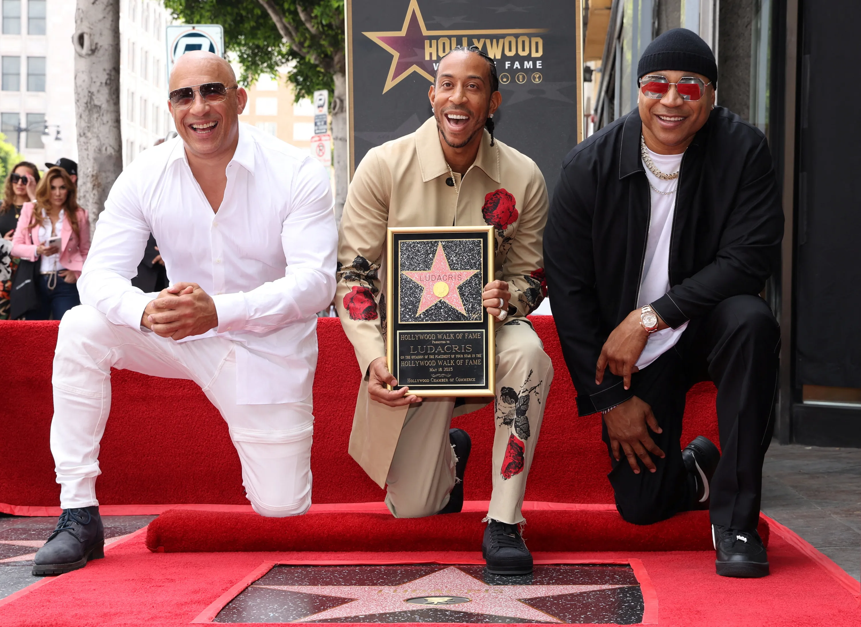 Rapper Ludacris, Vin Diesel and LL Cool J attend the unveiling of rapper Ludacris' star on the Hollywood Walk Of Fame, in Los Angeles, California, U.S. May 18, 2023. (Photo by Mario Anzuoni/Reuters)