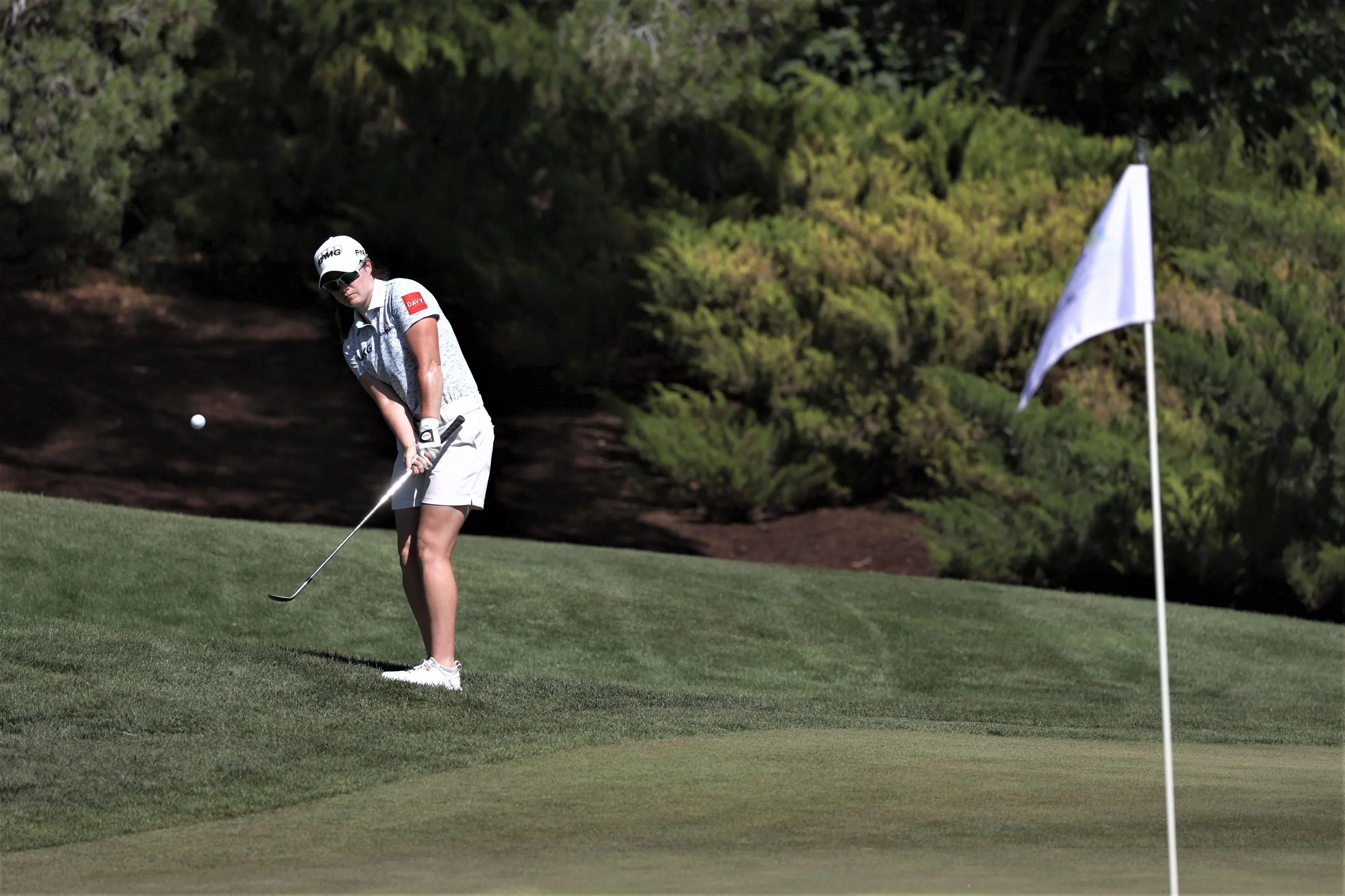 Leona Maguire of Ireland chips onto the ninth green on day four of the Bank of Hope LPGA Match-Play presented by MGM Rewards at Shadow Creek Golf Course on May 27, 2023 in Las Vegas, Nevada. (Photo by Harry How/Getty Images)