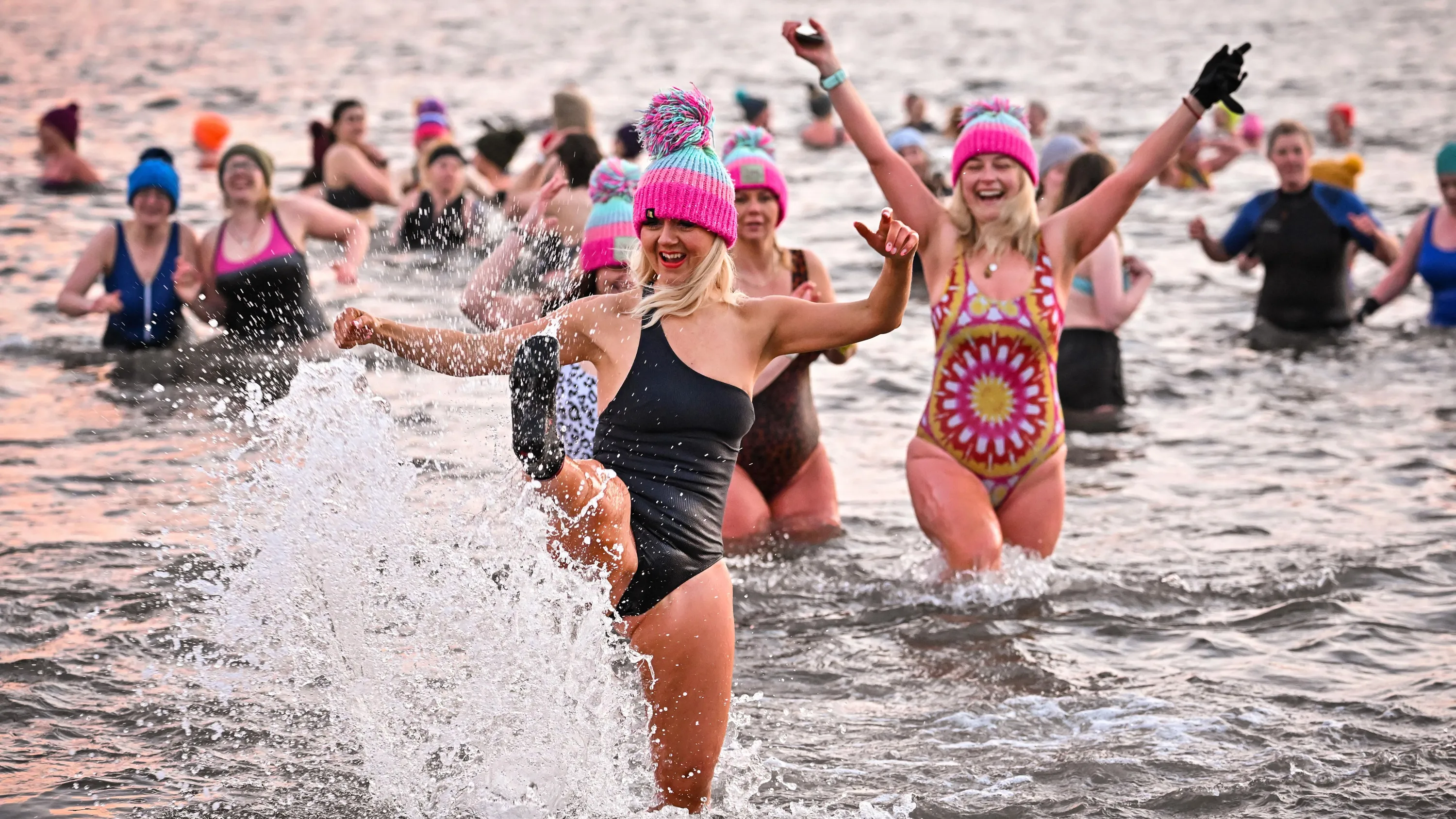 Several hundred swimmers took a sunrise dip in the North Sea at Portobello Beach, for the International Women’s Day Swimrise on March 08, 2022 in Edinburgh, Scotland. Women from all backgrounds, abilities and ages come together in aid of Edinburgh Women’s Aid, Edinburgh Rape Crisis and Held in Our Hearts. (Photo by Jeff J. Mitchell/Getty Images)