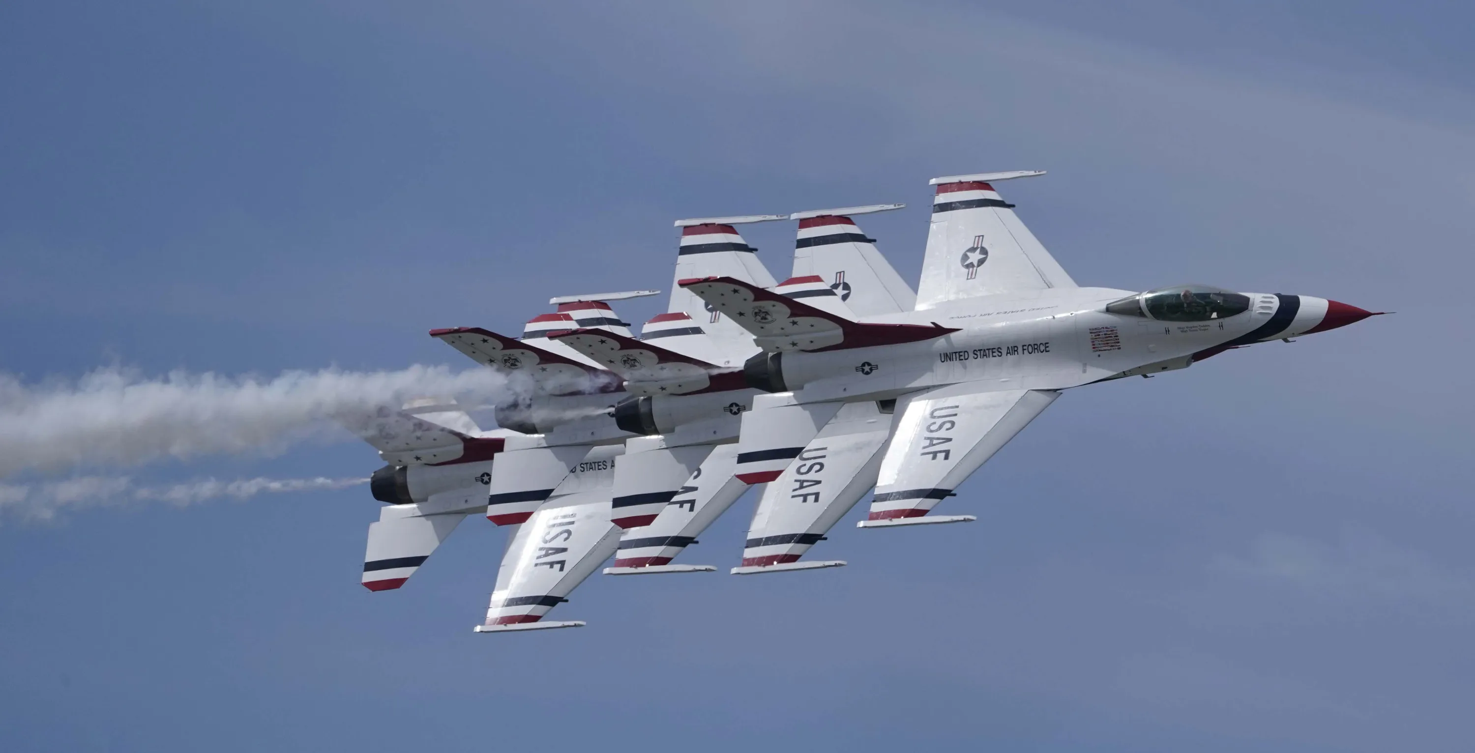 The United States Air Force Precision Demonstration team the THUNDERBIRDS. 2023 Point Mugu Air Show at Naval Base Ventura County (NBVC), Point Mugu, Ventura County, CA, USA on March 17, 2023. (Photo by Scott Mitchell/ZUMA Press Wire/Rex Features/Shutterstock)