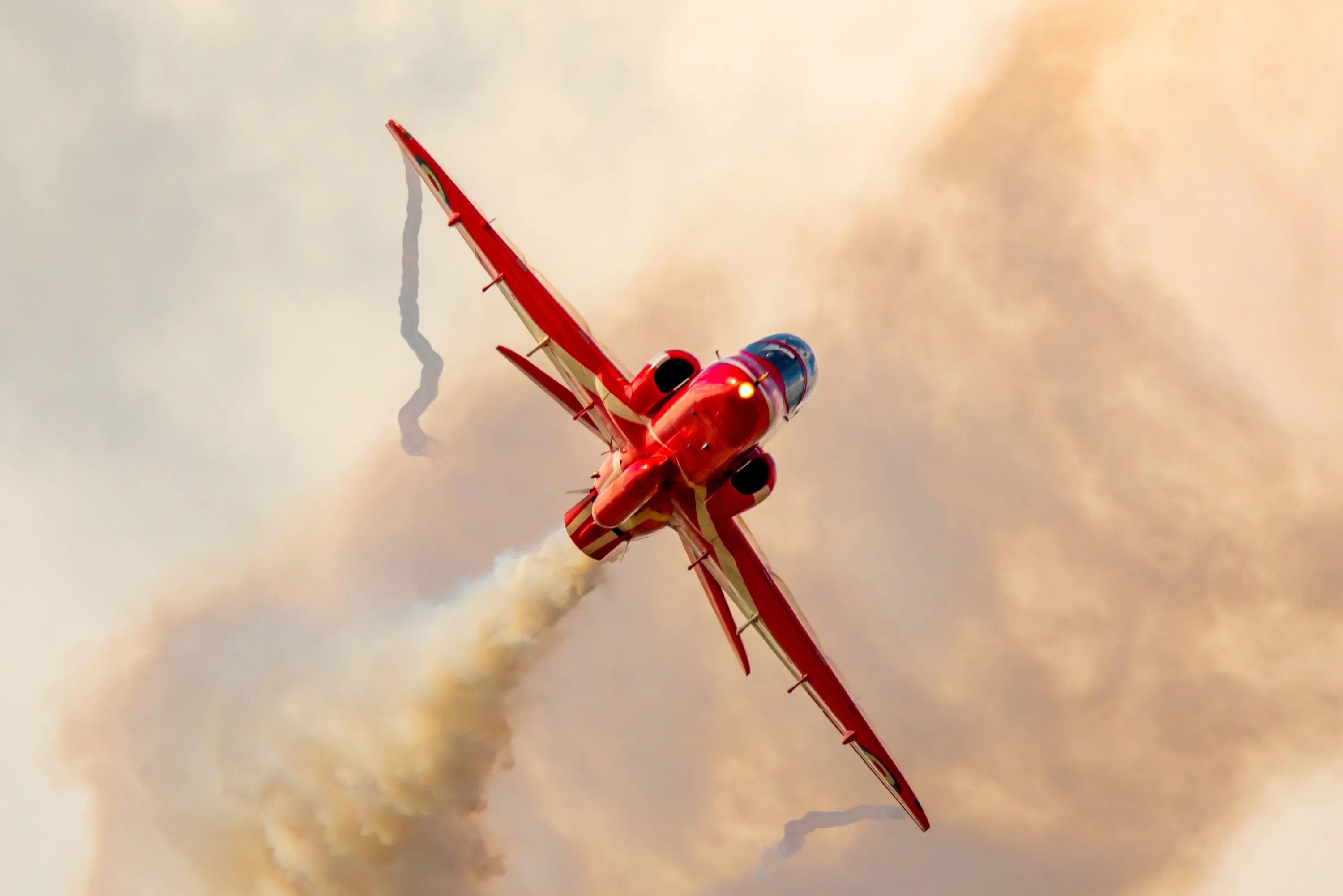The picture dated March 30, 2023 shows the iconic Red Arrows rehearsing in the skies over RAF Scampton in Lincolnshire, UK. The planes made the most of a break in the wet weather to practise their manoeuvres in preparation for this year's spectacular airshows. (Photo by Claire Hartley/Bav Media)