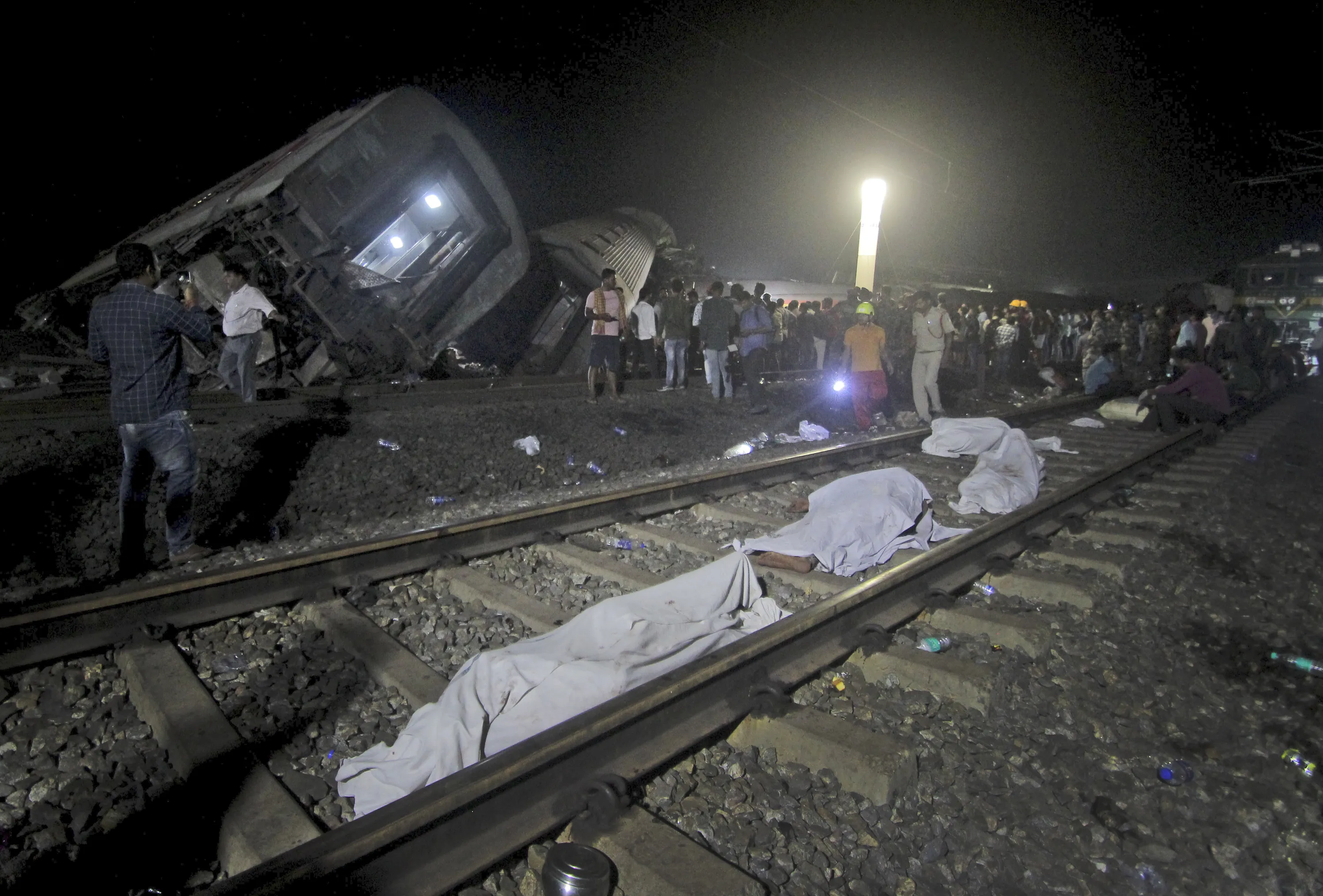 Bodies recovered from passenger trains lay on the track at the site of an accident, in Balasore district, in the eastern Indian state of Orissa, Saturday, June 3, 2023. Two passenger trains derailed in India, killing more than 200 people and trapping hundreds of others inside more than a dozen damaged rail cars, officials said. (Photo by AP Photo)