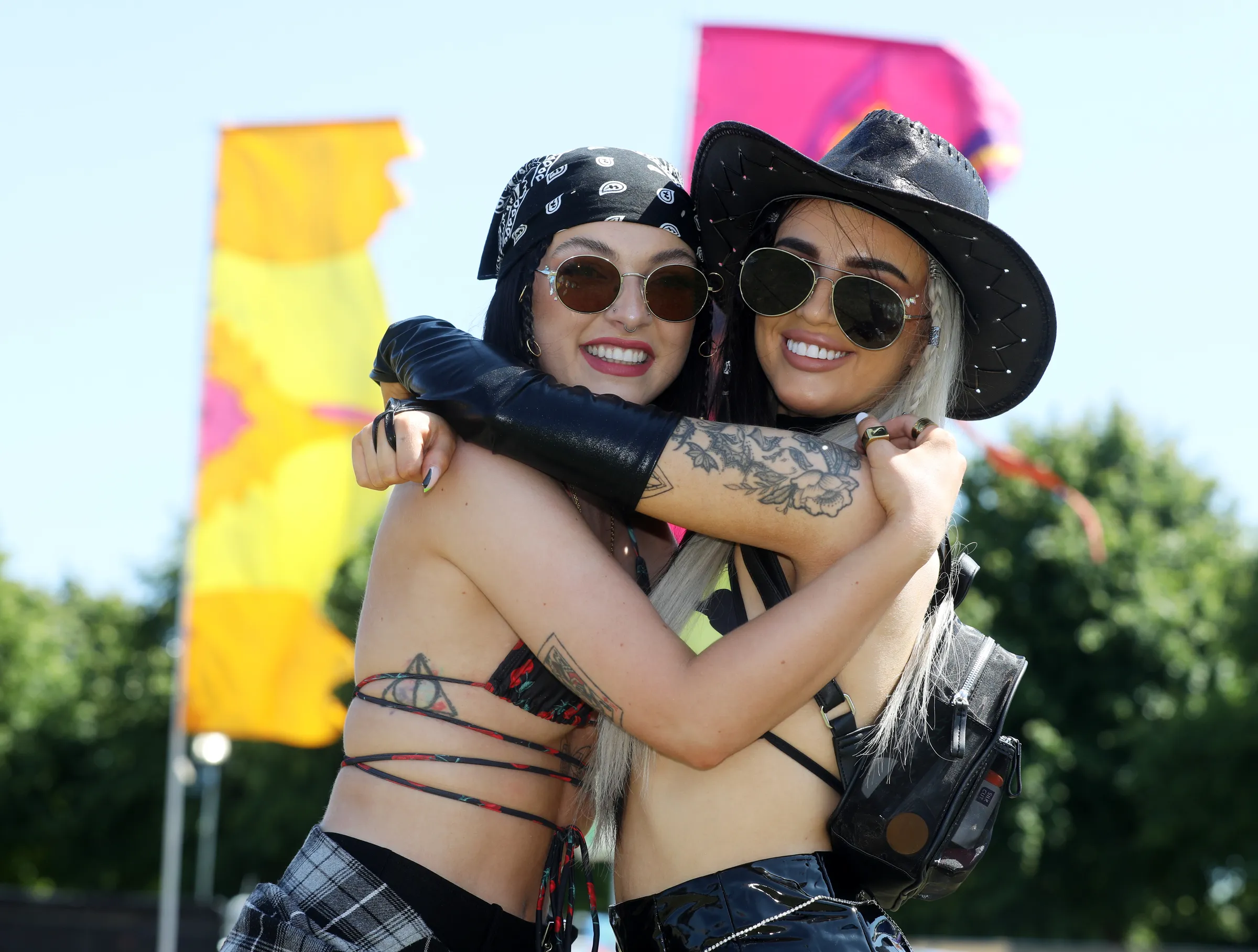 Amanda Carroll from Crumlin and Chloe Morgan from Finglas at the Forbidden Fruit Festival at the Royal Hospital Kilmainham in Dublin, Ireland on June 3, 2023. (Photo by Leah Farrell/RollingNews.ie)