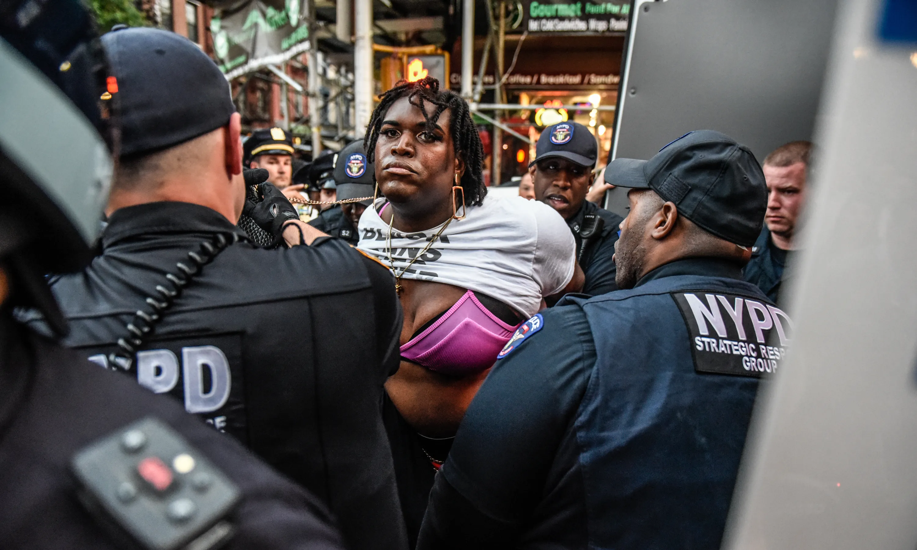 Queen Jean is arrested during a weekly protest in support of trans people near Washington Square Park on May 31, 2023 in New York City. Each week Qween Jean, a transwoman activist, gathers trans people and their allies for a rally and gathering. This week, the group marched from the park to protest trans issues on the eve of Pride month. (Photo by Stephanie Keith/Getty Images)