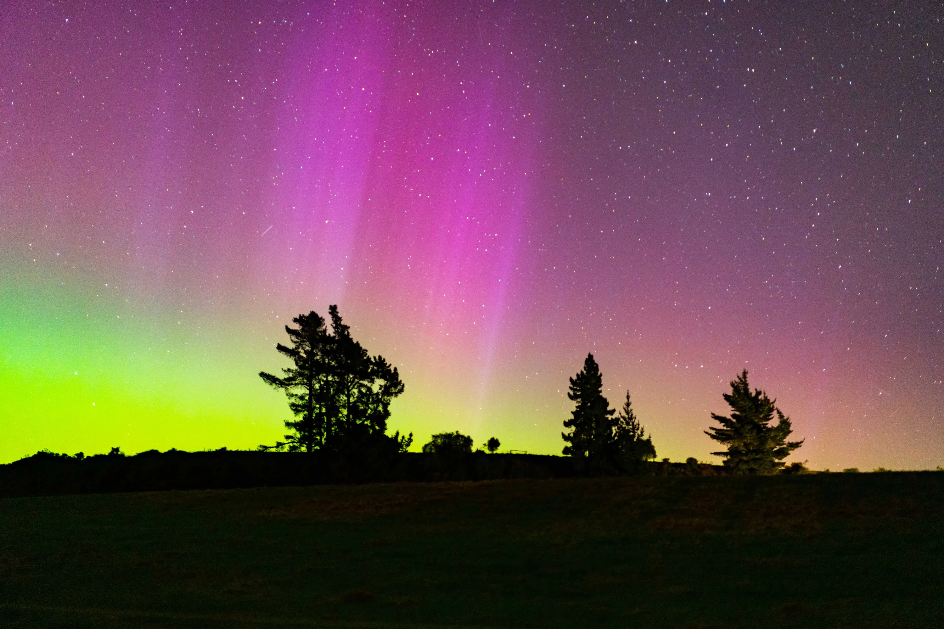 Trees silhouetted against the sky near Sheffield, Canterbury, New Zealand on April 24, 2023. (Photo by Richie Mills/The Guardian)