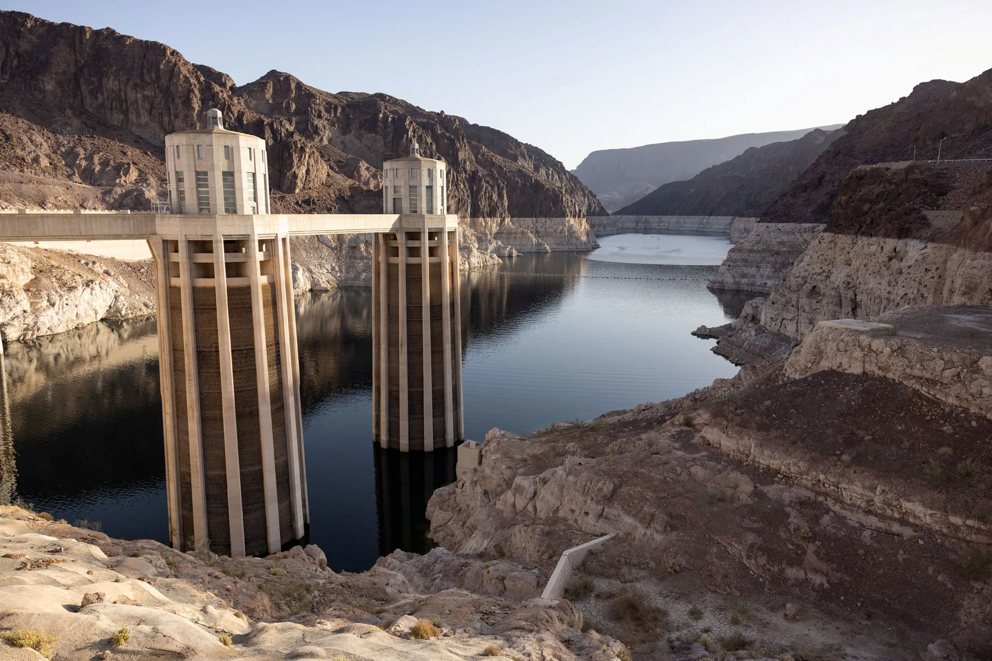 A growing amount of exposed rock is seen near intake tubes at Hoover Dam, where water levels have declined dramatically to lows not seen since the Lake Mead reservoir was filled after its construction, as climate change and growing demand for its water shrink the Colorado River and create challenges, in Boulder City, Nevada, U.S., April 17, 2022. (Photo by Caitlin Ochs/Reuters)