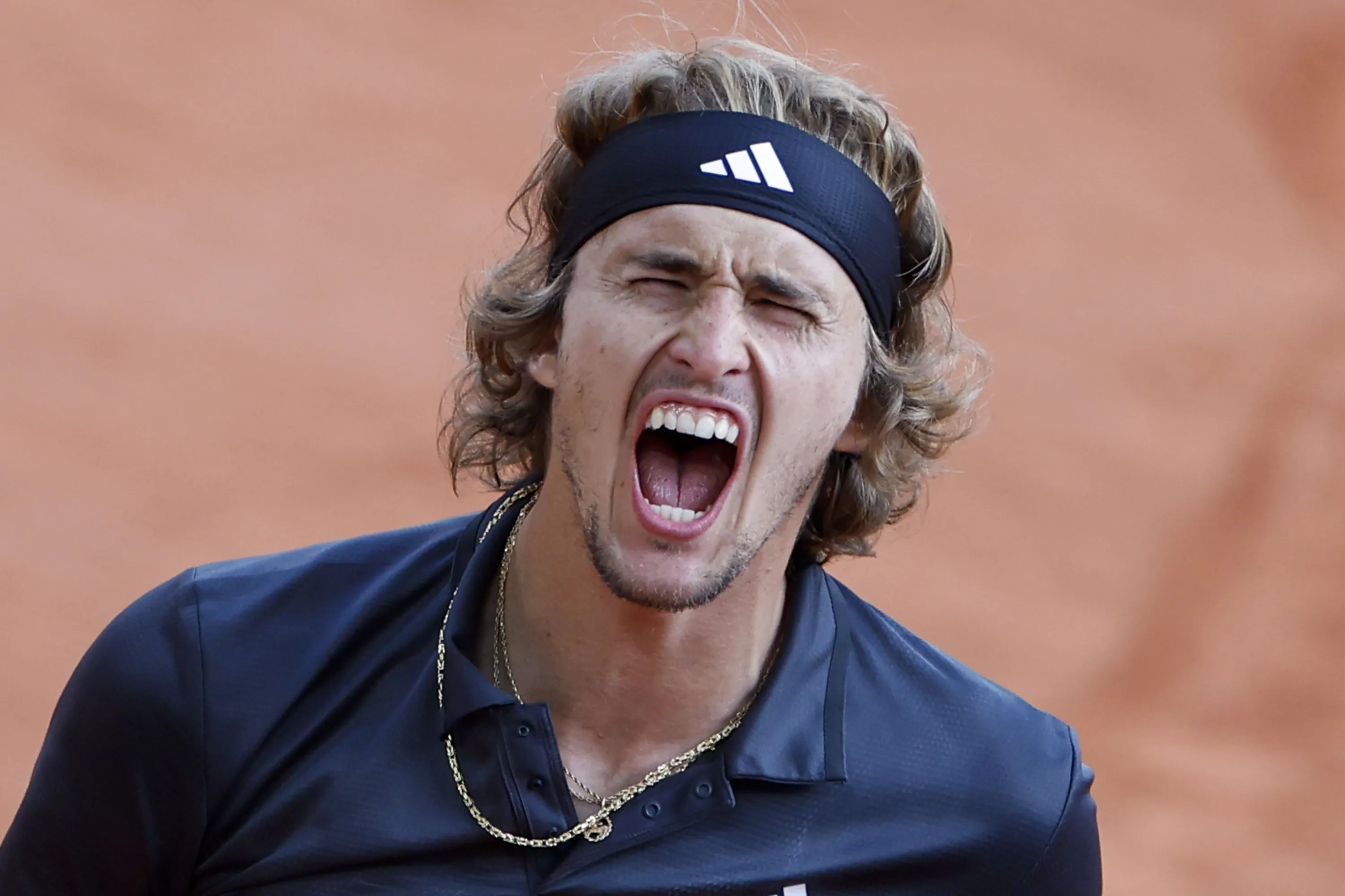 Germany's Alexander Zverev celebrates winning his quarterfinal match of the French Open tennis tournament against Argentina's Tomas Martin Etcheverry in four sets, 6-4, 3-6, 6-3, 6-4, at the Roland Garros stadium in Paris, Wednesday, June 7, 2023. (Photo by Jean-Francois Badias/AP Photo)