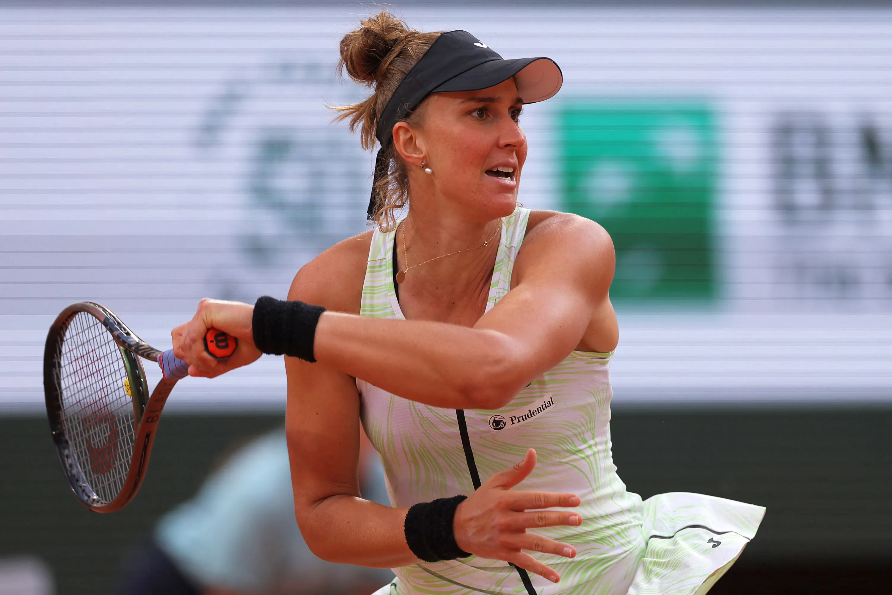 Brazil's Beatriz Haddad Maia returns the ball to Poland's Iga Swiatek during their women's singles semi-final match on day twelve of the Roland-Garros Open tennis tournament at the Court Philippe-Chatrier in Paris on June 8, 2023. (Photo by Thomas Samson/AFP Photo)