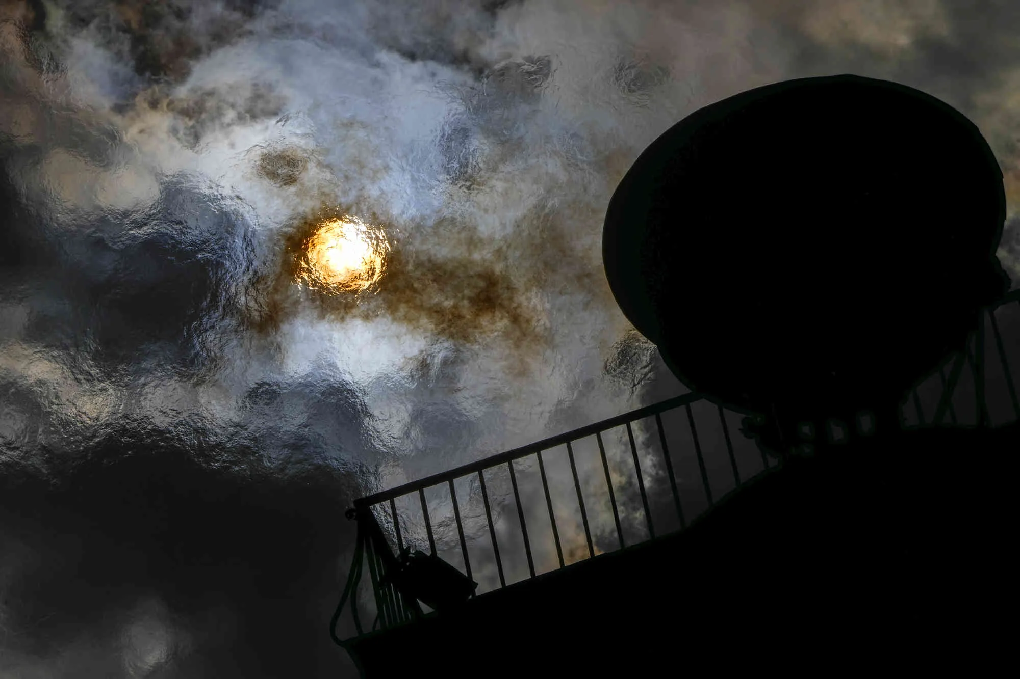 The sun is seen trough the flame of a gas torch lit on top of a Rostral column during celebrations for the 320th anniversary of St. Petersburg, in St. Petersburg, Russia, Saturday, May 27, 2023. (Photo by Dmitri Lovetsky/AP Photo)